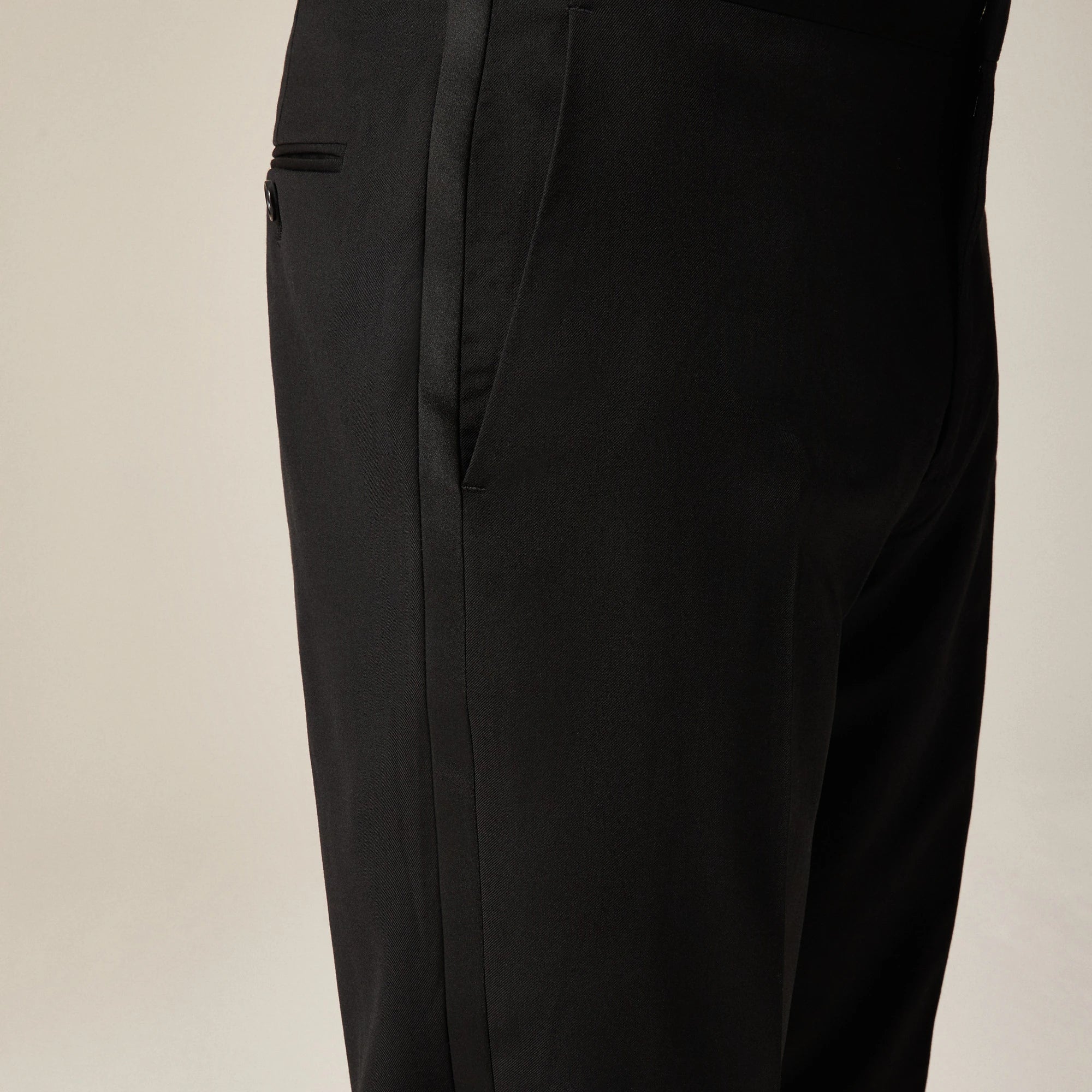 Welcome to the J.Crew Suit Shop, home of our three signature fits: Ludlow (a modern slim fit), Crosby (a traditional classic fit) and Kenmare (a relaxed-but-polished fit). We craft our suits in premium fabrics from some of the world's best mills using time-honored tailoring techniques. We cut this tuxedo pant in fabric from Tollegno 1900 (established 1862 in Biella, Italy), which is one of the country's last mills to still spin its own yarns, a process they've been perfecting for over 150 years.