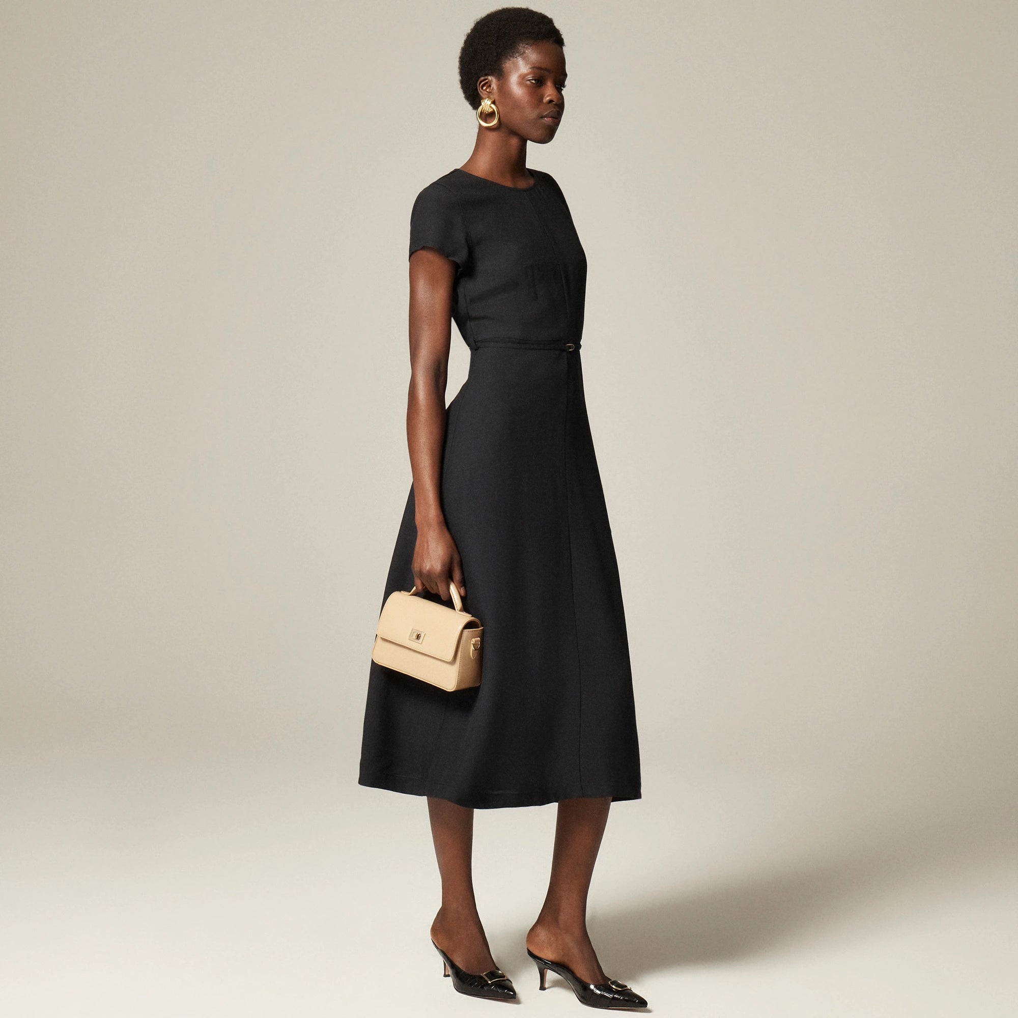 A new favorite for your nine-to-five and beyond. . .This simple and sophisticated midi dress is accented with tailored seam details and comes with a removable belt for extra definition. Plus, it's made from our new luster canvas, a modern take on vintage-inspired suit fabrics with a summery basketweave texture, lots of drape and a lightweight feel.