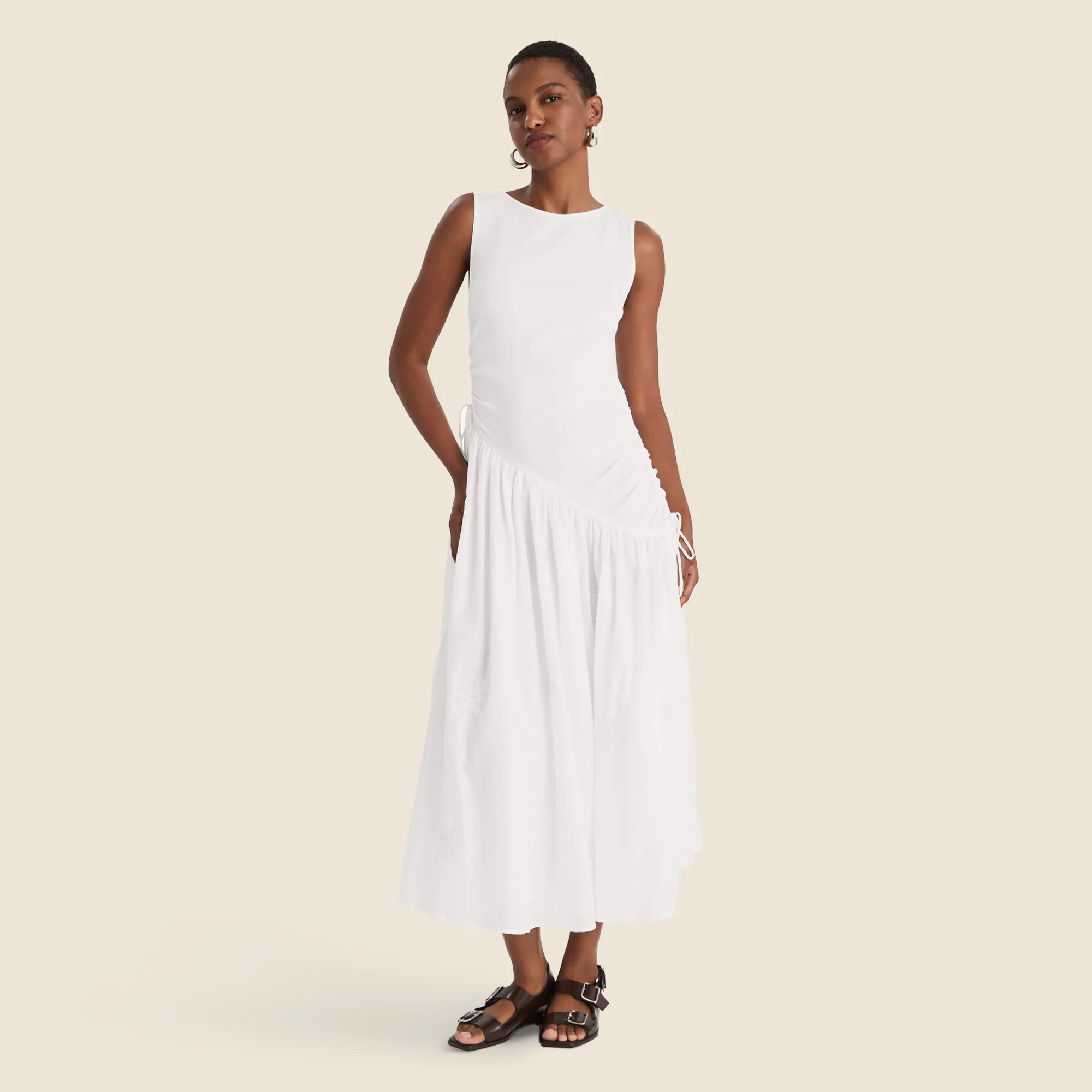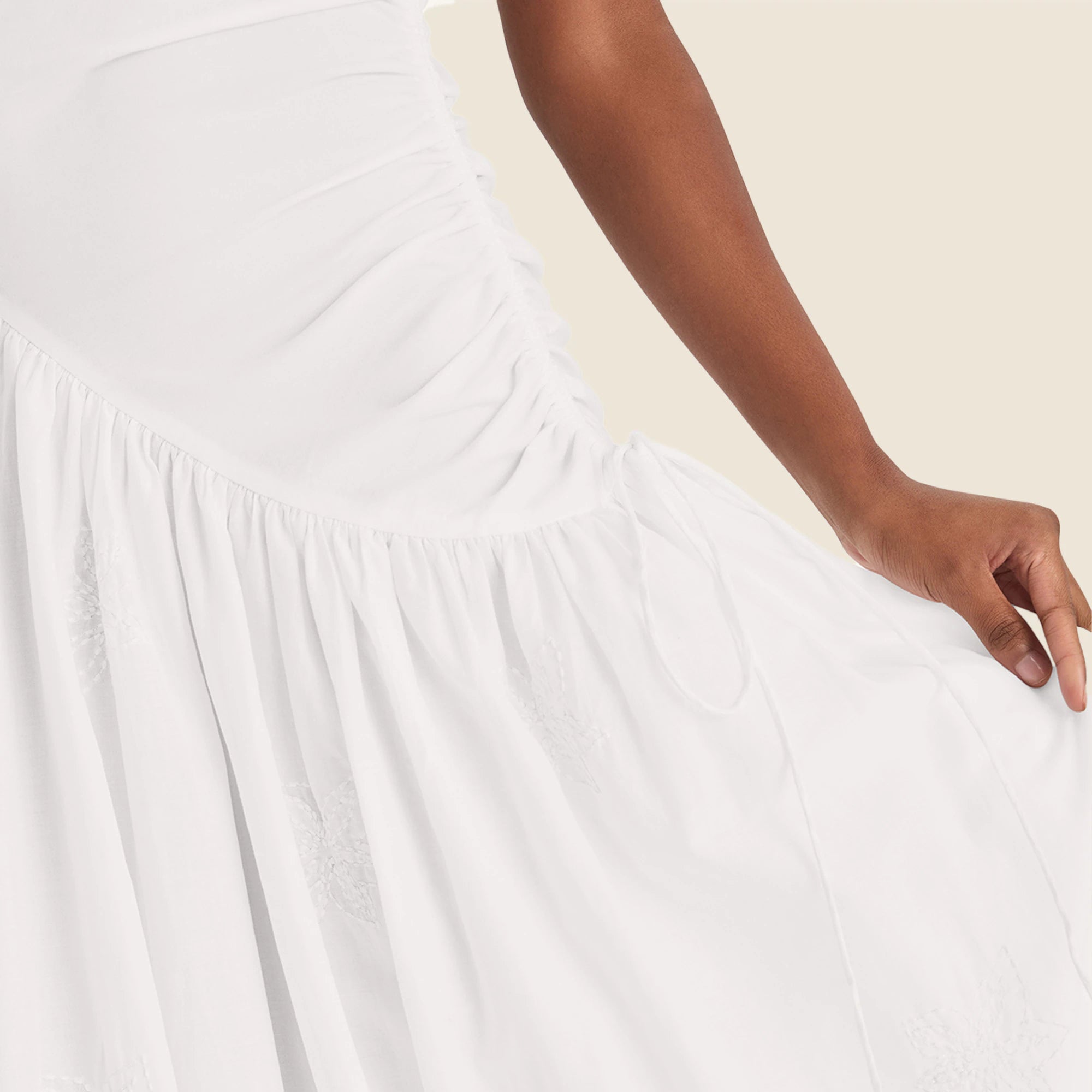 Merlette is a New York-based atelier, creating thoughtfully designed garments with the modern woman and her everyday life in mind. Merlette was founded in 2016 by designer Marina Cortbawi, with a dedication to refining shape, texture and details into a sense of empowered femininity, allowing women to feel elegant and at ease. The Isolde Dress blends cotton jersey comfort with artisanal embroidered voile for a soft, vintage-inspired finish.