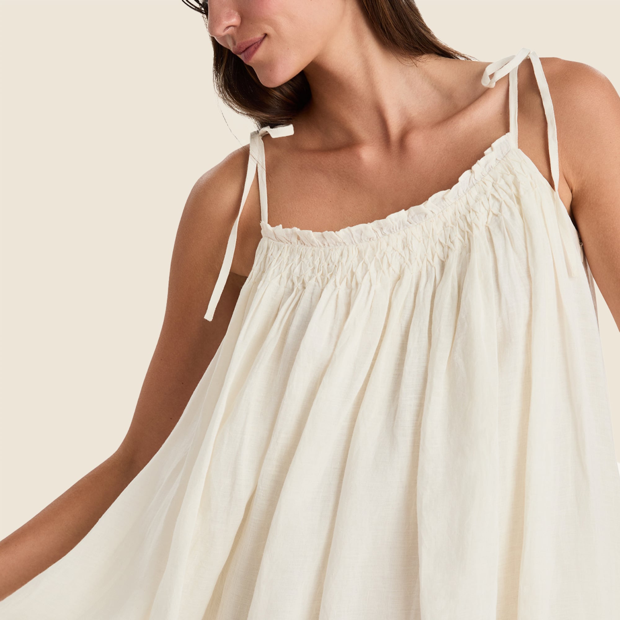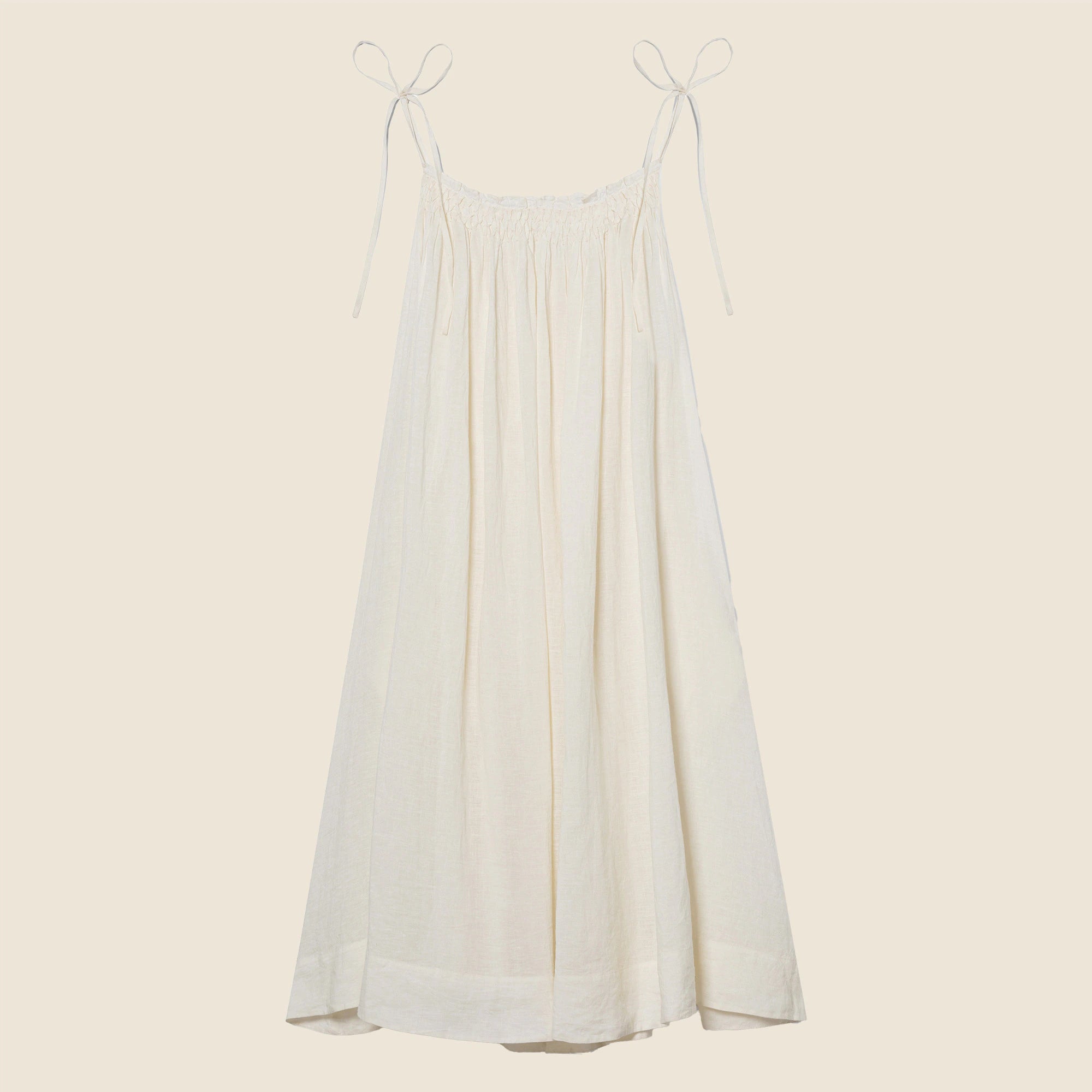 Merlette is a New York-based atelier, creating thoughtfully designed garments with the modern woman and her everyday life in mind. Merlette was founded in 2016 by designer Marina Cortbawi, with a dedication to refining shape, texture and details into a sense of empowered femininity, allowing women to feel elegant and at ease. Breezy and beautiful, the Laurus Dress is crafted from airy linen with smocking details and a flowy silhouette that moves with you.