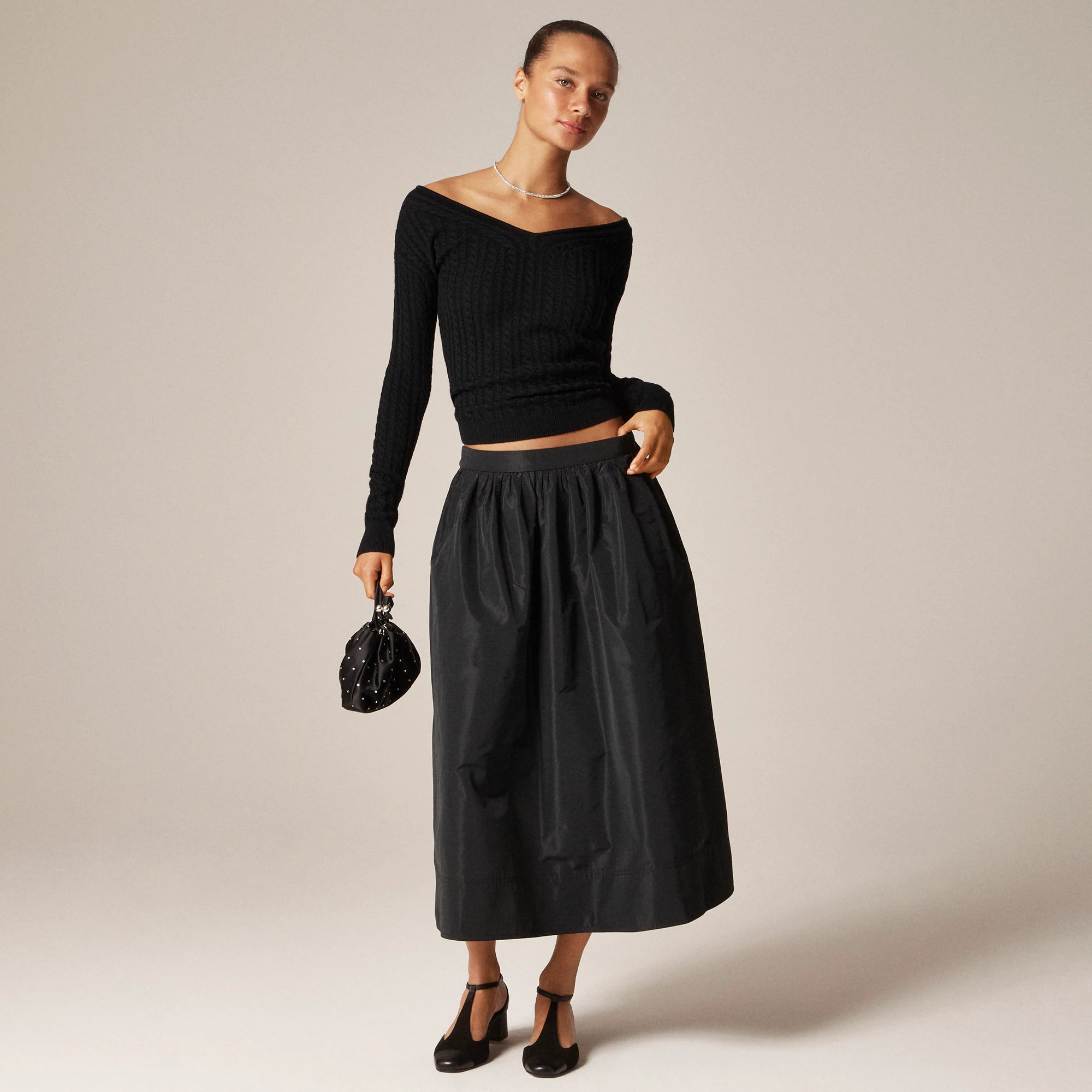 Made to make an entrance. This statement skirt is cut in a just-right midi length and comes with an elastic detail at the back of the waistband for the perfect fit every time. Plus, it's crafted from a smooth, floaty taffeta fabric.