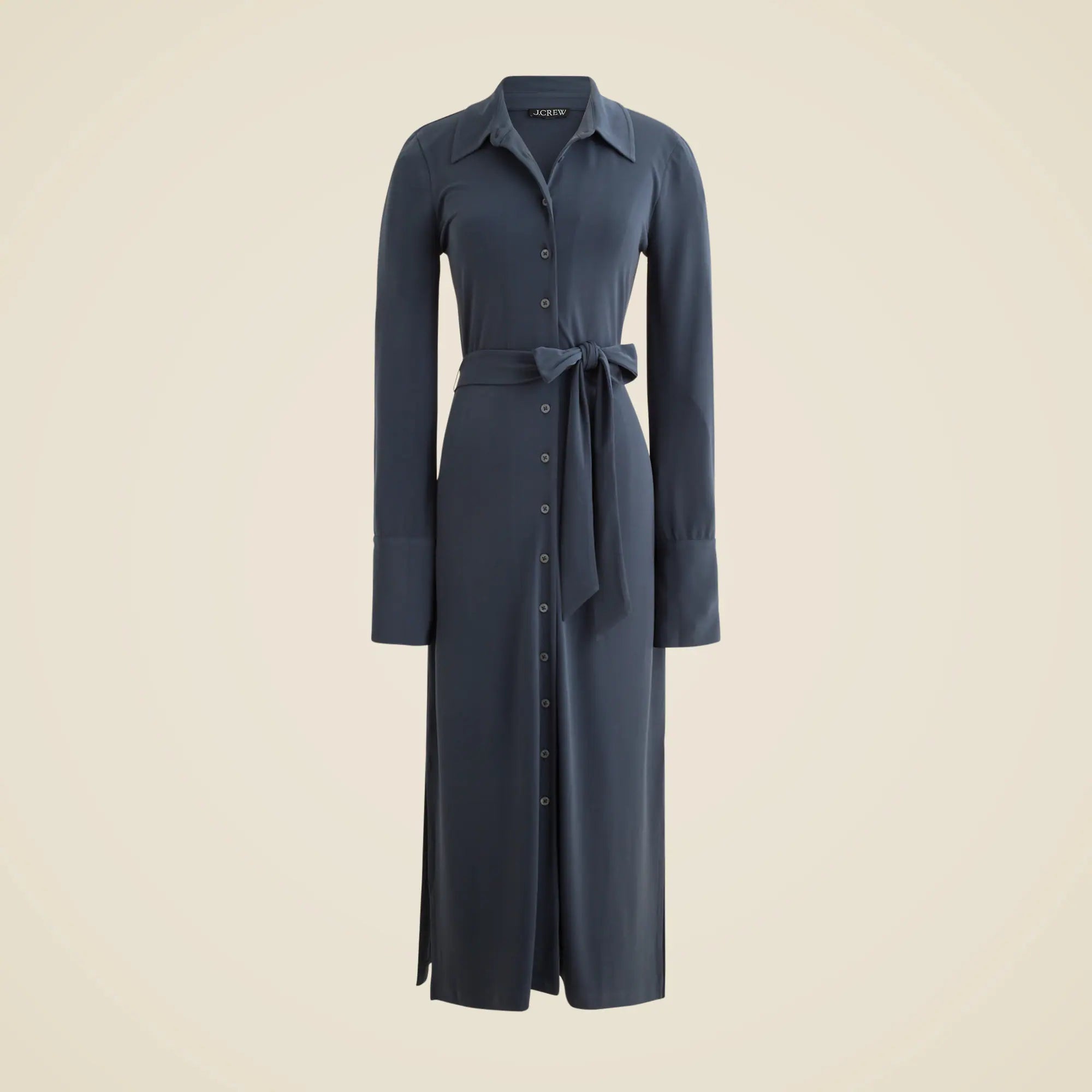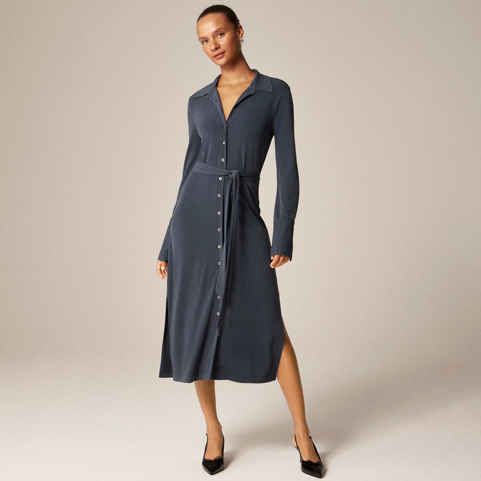 For work, weekends, wherever. . .Crafted in our soft, stretchy matte jersey, this midi dress comes with a sharp collar detail, buttons all the way down the front and a tie at the waist, so you can wear it cinched or relaxed.