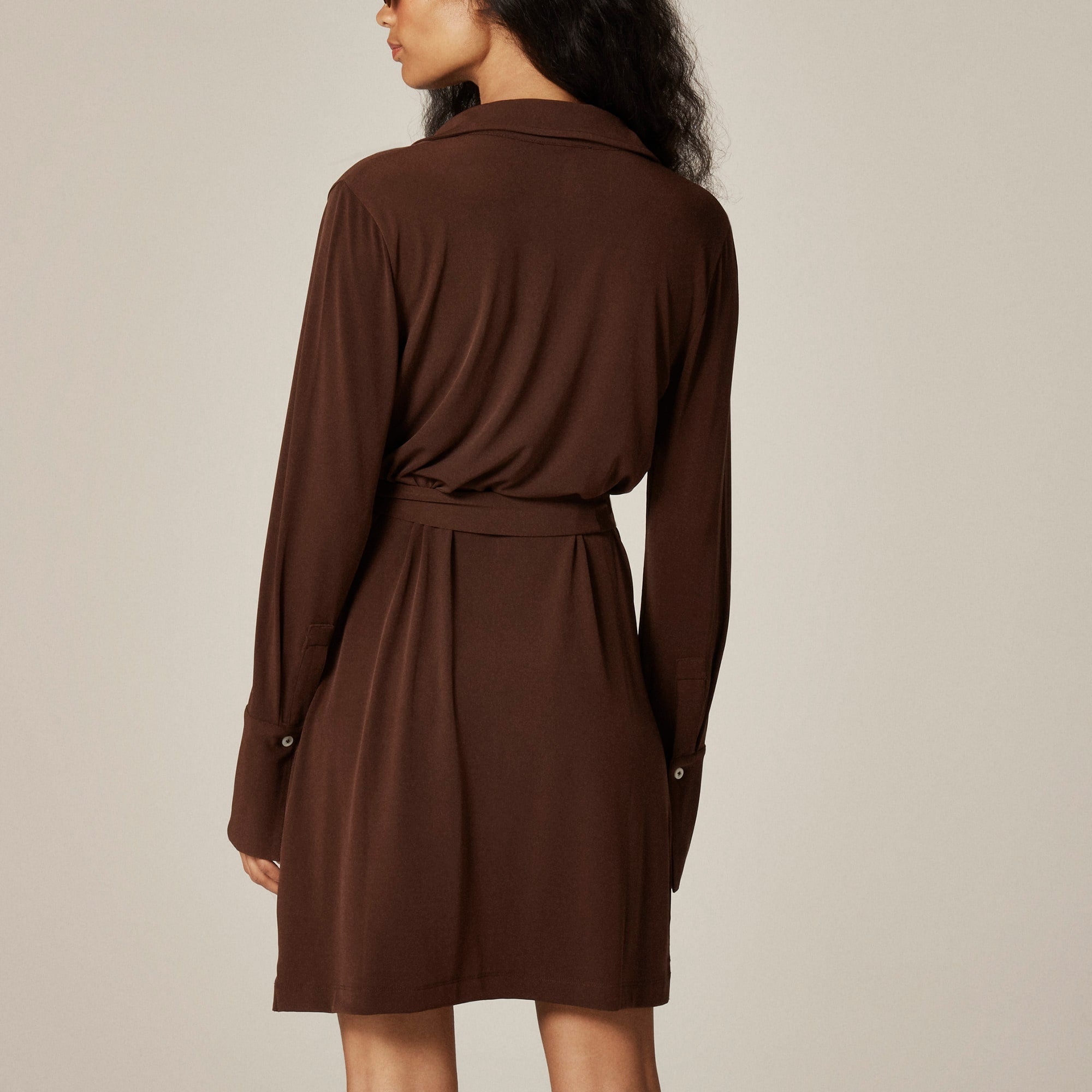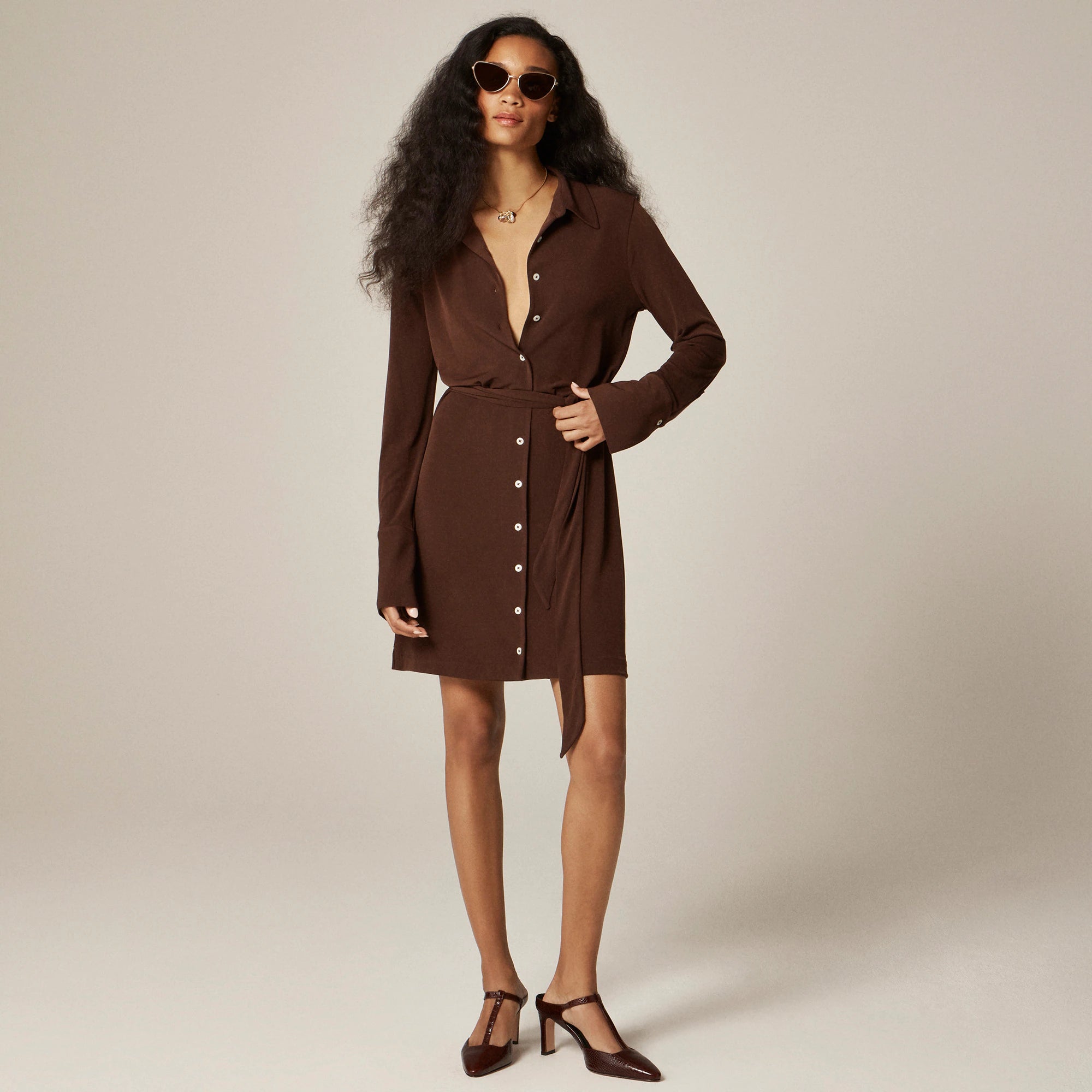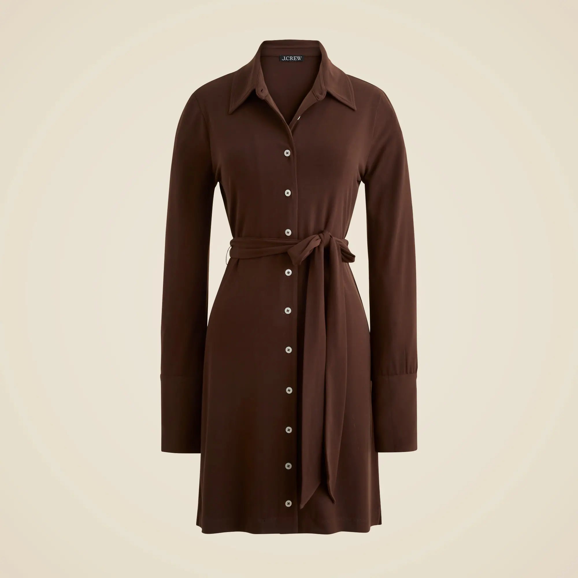 For work, weekends, wherever. . .Crafted in our soft, stretchy matte jersey, this mini dress comes with a sharp collar detail, buttons all the way down the front and a tie at the waist, so you can wear it cinched or relaxed.