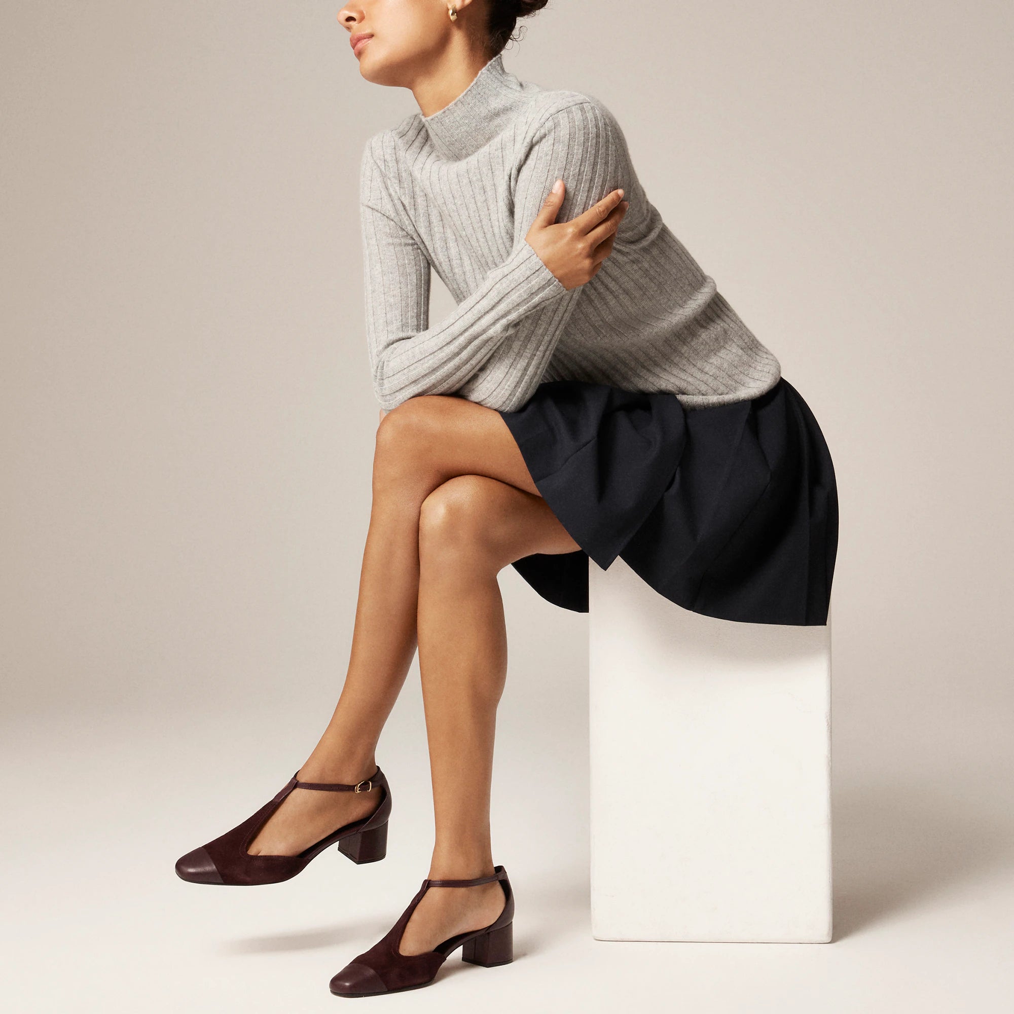Our always-classic mid heels just got even better. . . This walkable style feels totally special, thanks to the rounded T-strap silhouette, smooth suede fabric and leather toe-cap in tonal shades.