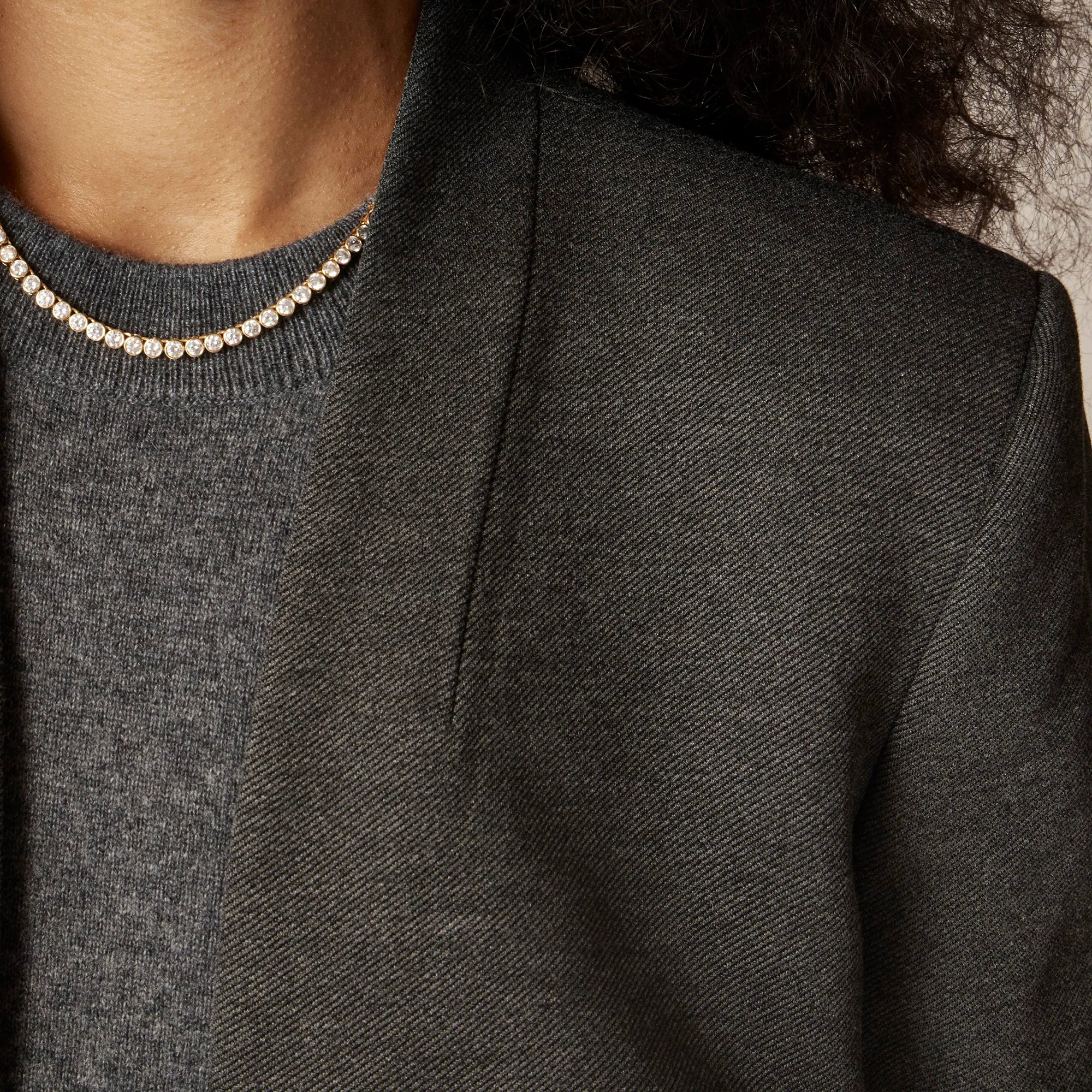 The latest take on our customer-favorite going-out blazer. With an open front, slim cut and a subtly strong shoulder, it's for those nights you want to show off your favorite top (thus the name) but it's substantially stretchy and structured enough to be worn anytime, anywhere. Like meetings, lunch dates, coffee runs and more. . .P.S. Pair this with our Cameron pant in stretch twill and you've got a modern take on the suit.