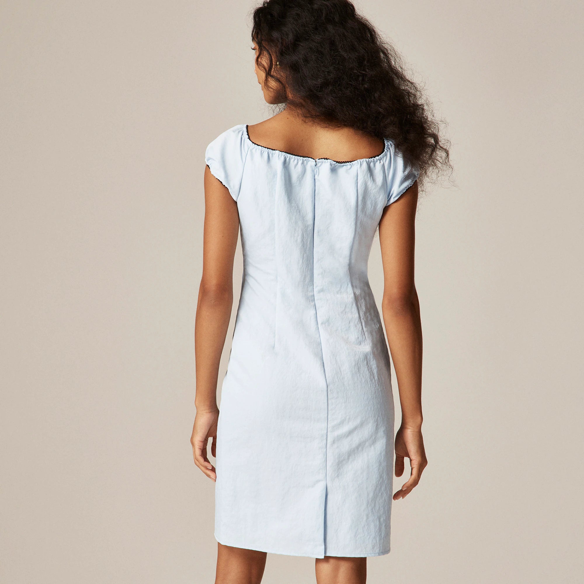 A romantic silhouette that's as versatile as it is elevated. It comes with off-the-shoulder sleeves and subtle scallop-trim details along the neckline and hem. Plus, it's crafted from a new textured fabric, which has a natural crinkle and a cool dimensional effect.
