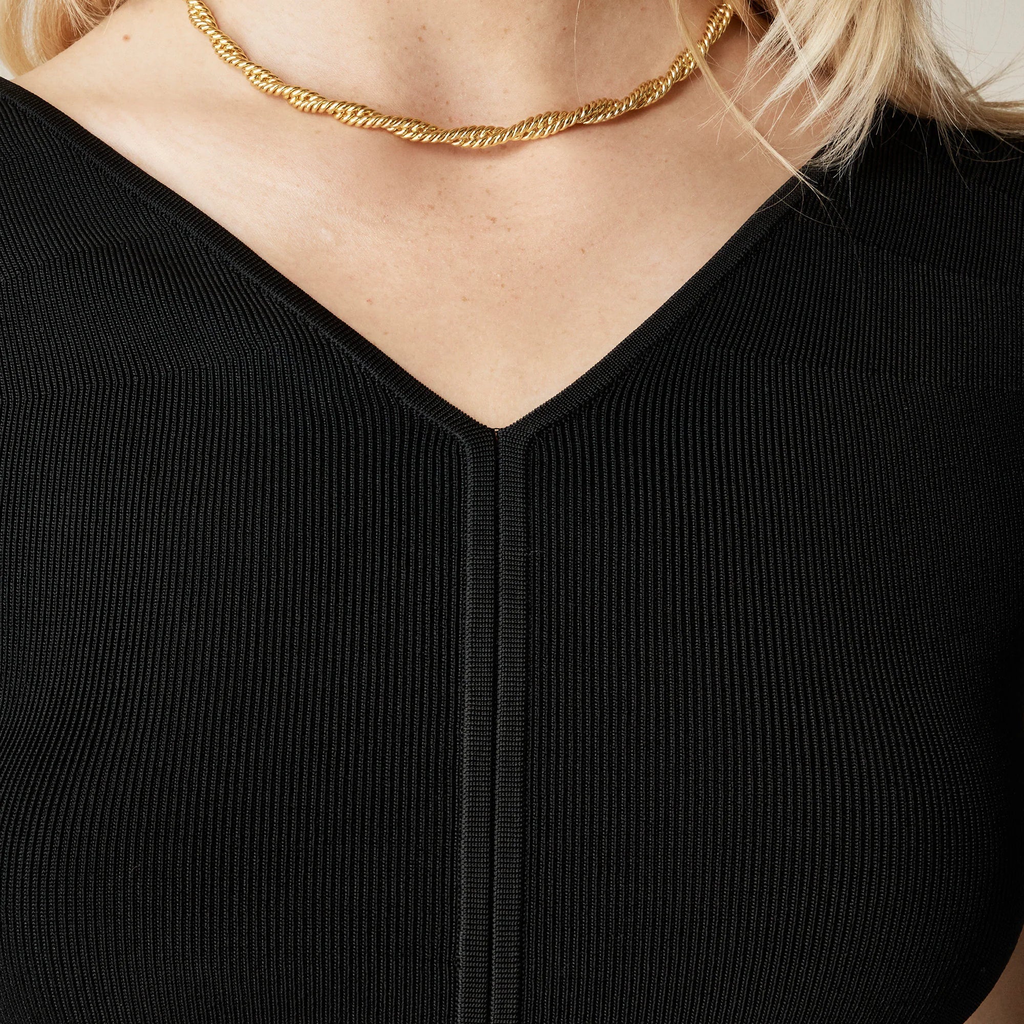 Date-night dressing, down to a V. This off-the-shoulder ribbed shell is made from soft, stretchy fabric that sits close to the body and comes with a wider neckline that frames the face. The best part: It has a matching skirt, so you're already halfway to a pulled-together look.