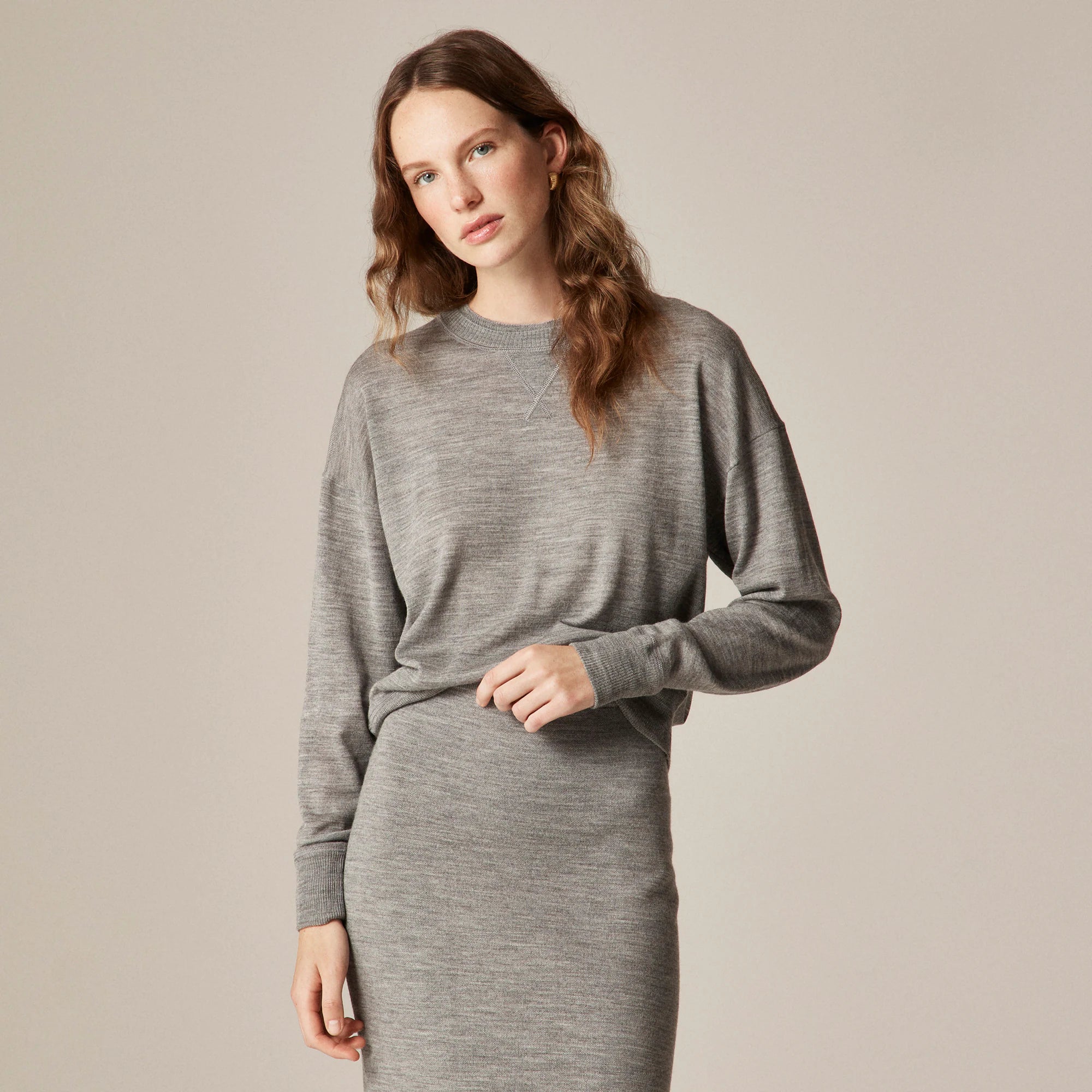 Inspired by your favorite lounge layer, in merino wool. It comes in an easy, relaxed fit that still looks polished, with our go-to merino wool for lightweight warmth. You'll love the notch detail and ribbed stitching at the neckline, plus more subtle ribbing at the hem and cuffs.