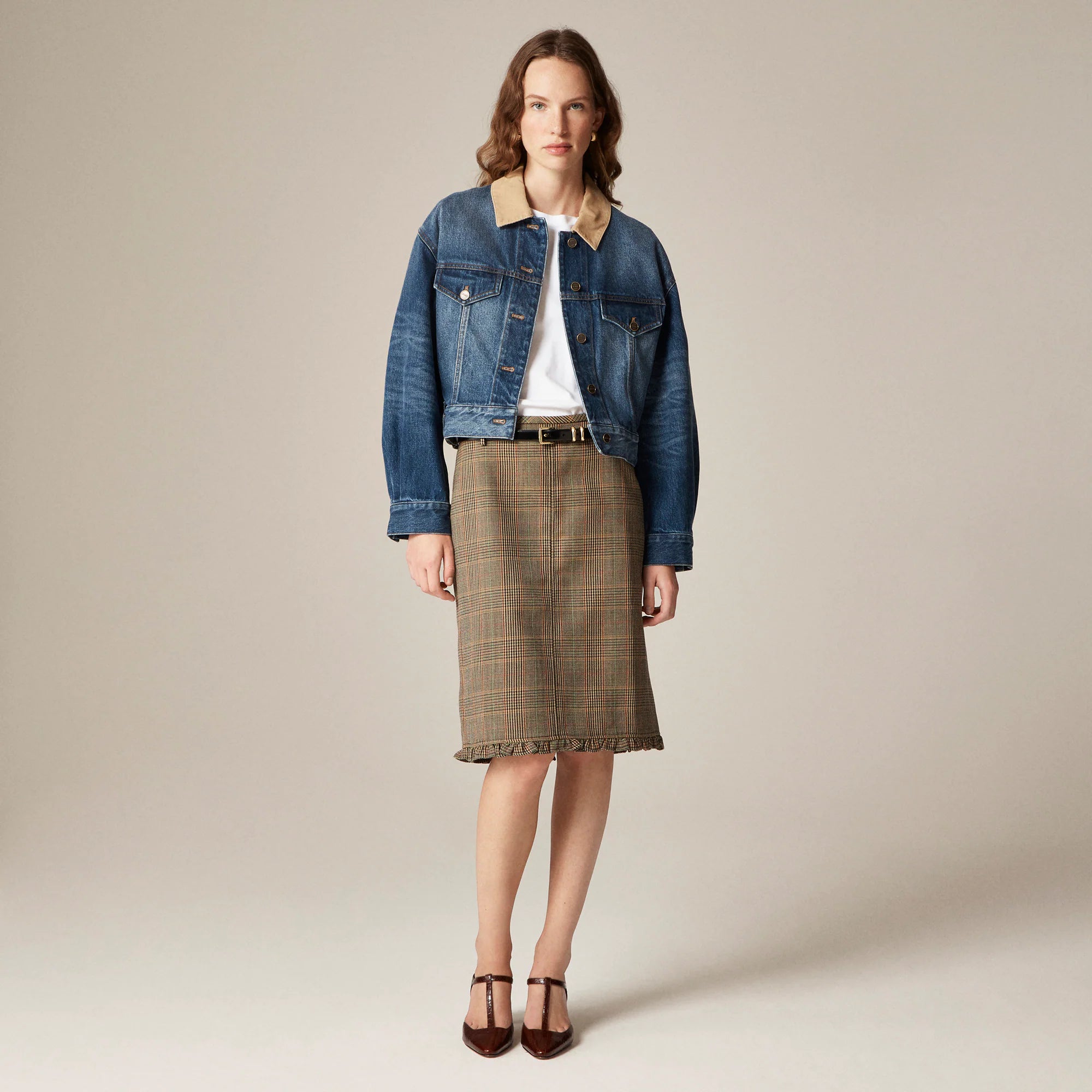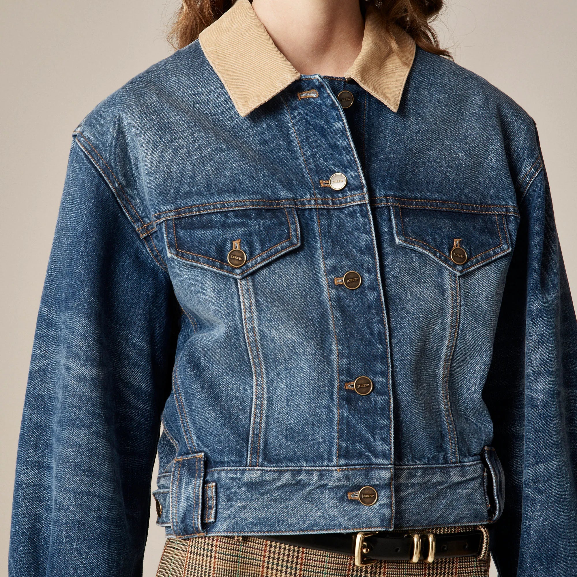Heritage workwear, reworked for right now. This fresh take on the classic trucker jacket comes in a boxy, subtly oversized fit with a cropped hem. It's crafted from durable 100 percent cotton denim and designed with a contrast corduroy collar, flap pockets and embossed hardware.