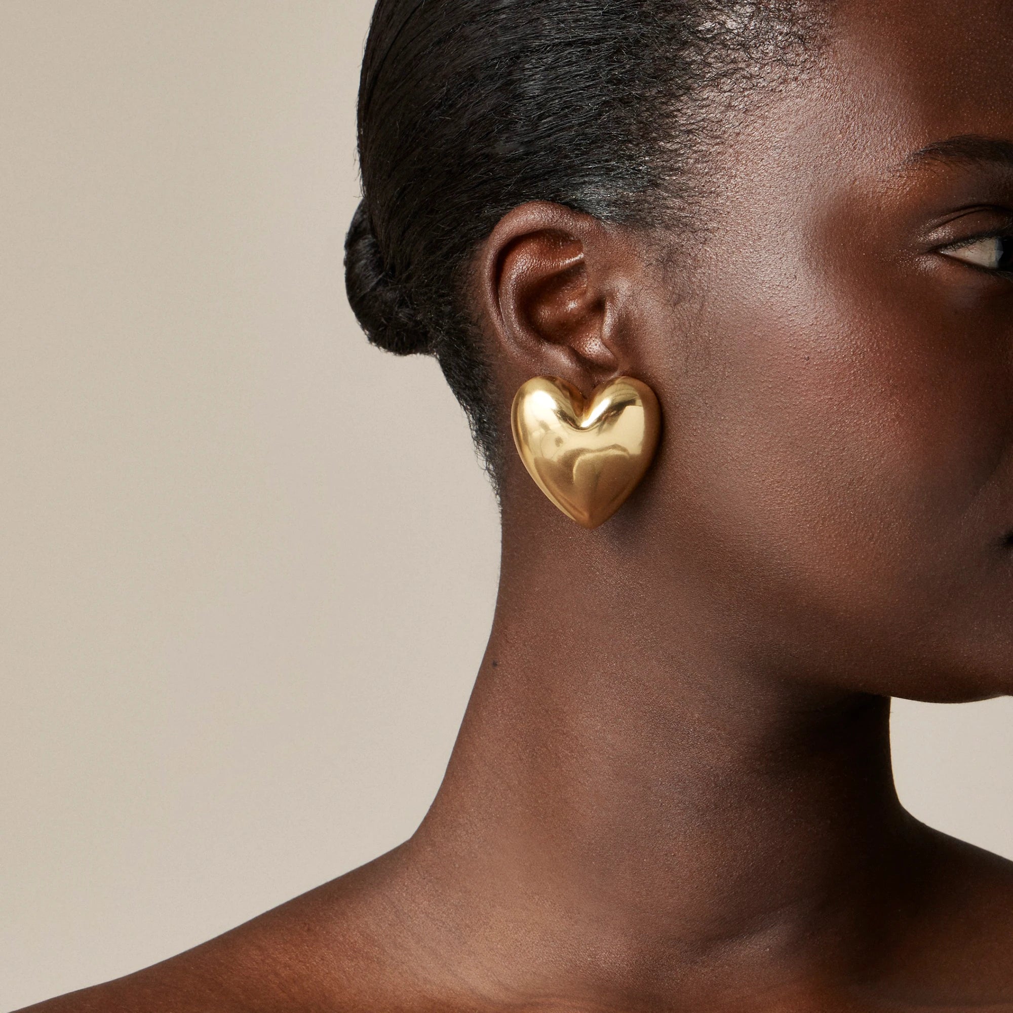 New earrings to absolutely love. . .This heart-shaped style makes the perfect statement (for yourself or as a gift). Feel-good fact: It was made using eco-friendly recycled-brass casting. Want to keep your jewelry looking like new? We recommend removing it before showering or exercise and putting it on after applying hair products or perfume. To clean your pieces, polish them with a soft, dry cloth—and when not wearing, store them in a pouch or jewelry case.