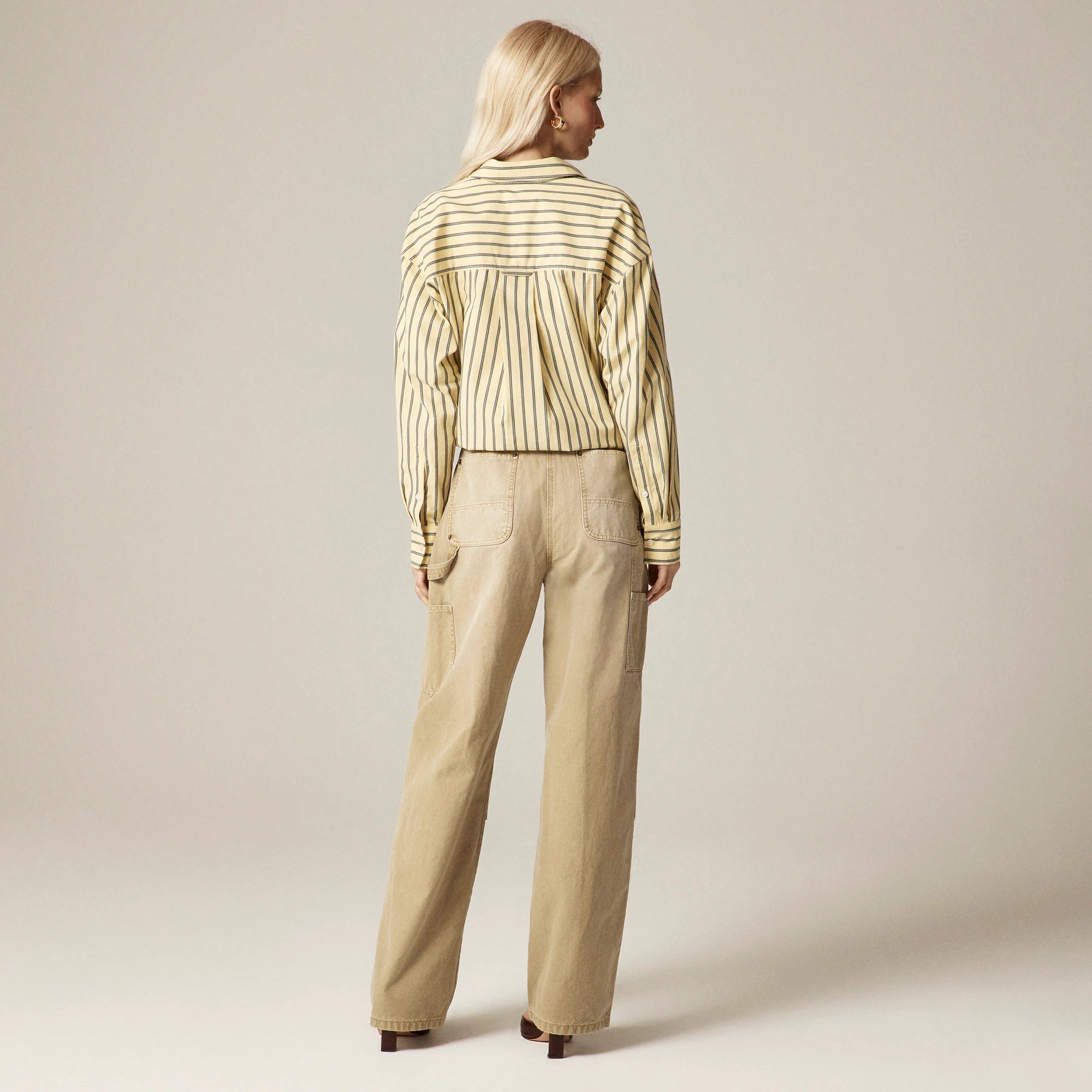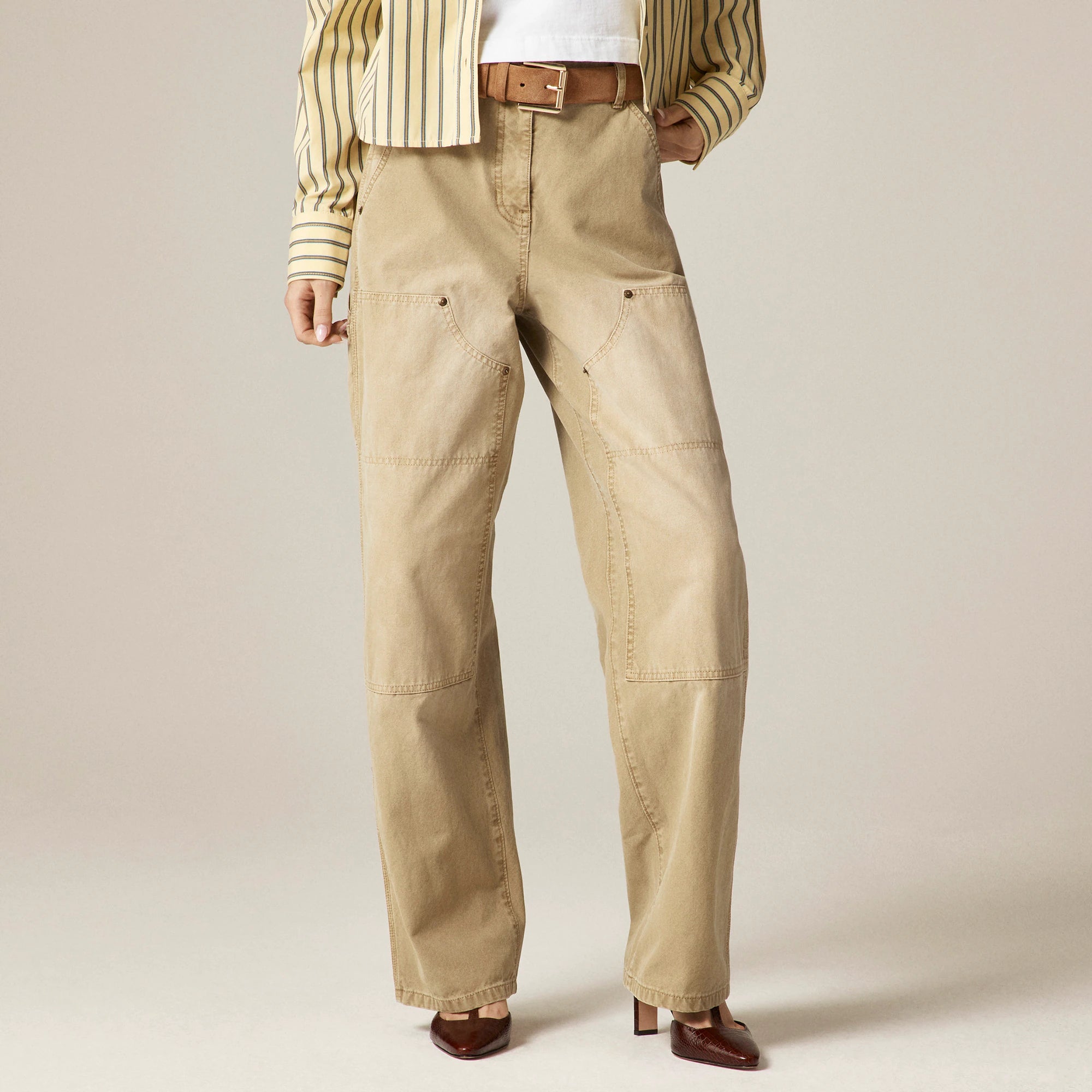 A new workwear classic with staying power. Inspired by classic carpenter styles, this pant comes with a comfortable high rise that sits at the waist, a relaxed, straight-leg fit and a 29.5" inseam that falls just below the ankle. It's finished with a few functional details like reinforced panels at the knees and a hammer loop for a look that defines modern durability. Plus, it's crafted from 100 percent cotton canvas that only gets better the more you wear it.