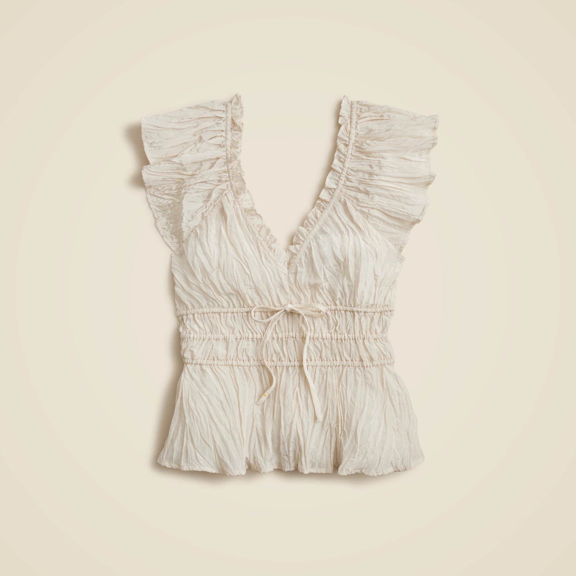A picture-perfect style for everything spring and summer. Designed with versatility in mind, this style comes with two ties at the waist to draw you in and a V-neck in the front and back for a hint of drama. Plus, it's crafted from pre-crinkled fabric for a touch of texture.