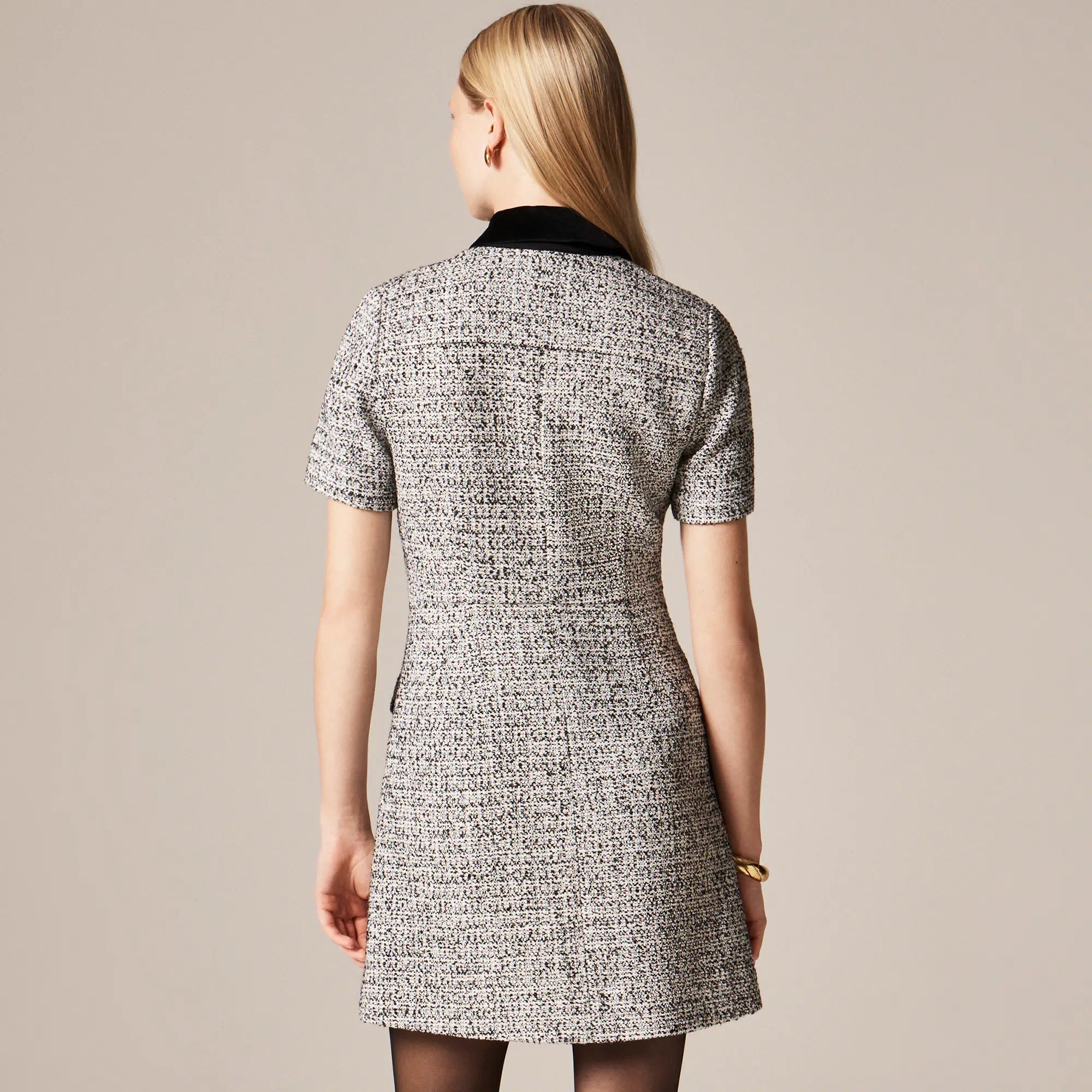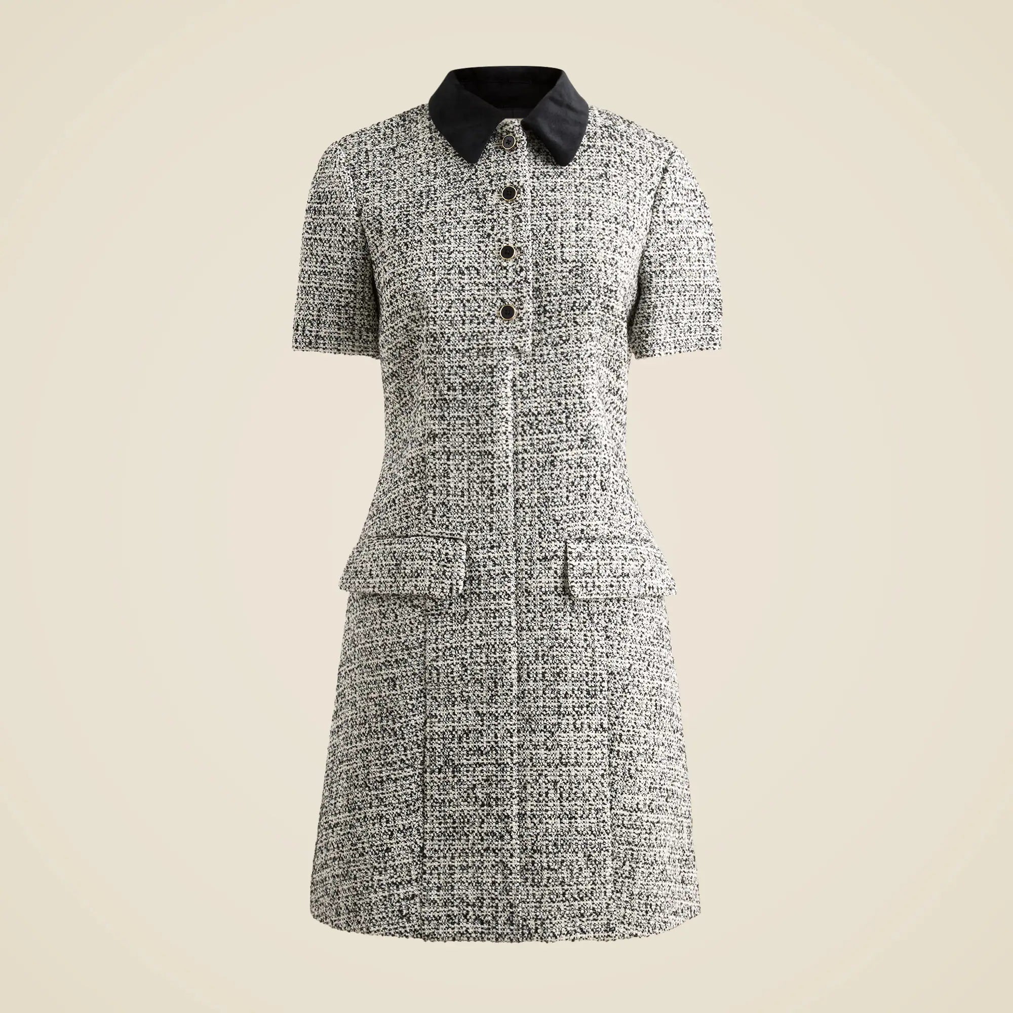 A made-for-today classic that can take you anywhere. Polished, flattering and endlessly versatile, this timeless silhouette comes with a crisp collar, tailored short sleeves and subtle front flap pockets. It's the kind of dress that works just as well with flats and a tote as it does with heels and a clutch. Think of it as your shortcut to looking pulled-together, no matter the occasion. Plus, this version is crafted from textured wool-blend tweed for a heritage-inspired spin.