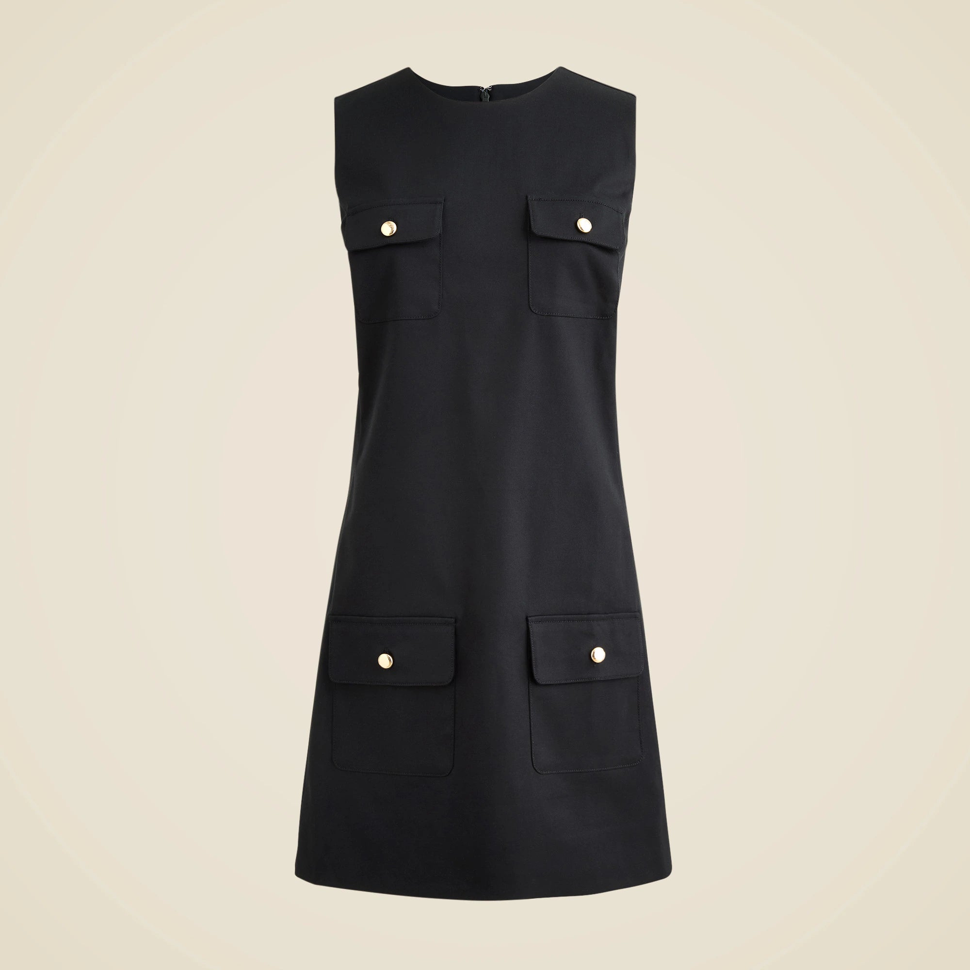 A modern spin on prep. This shift dress takes cues from our famous lady jackets with a clean, straight silhouette and four front flap pockets finished with signature hardware. The subtly structured twill fabric gives it just the right amount of polish—easy to dress up, down or somewhere in between.