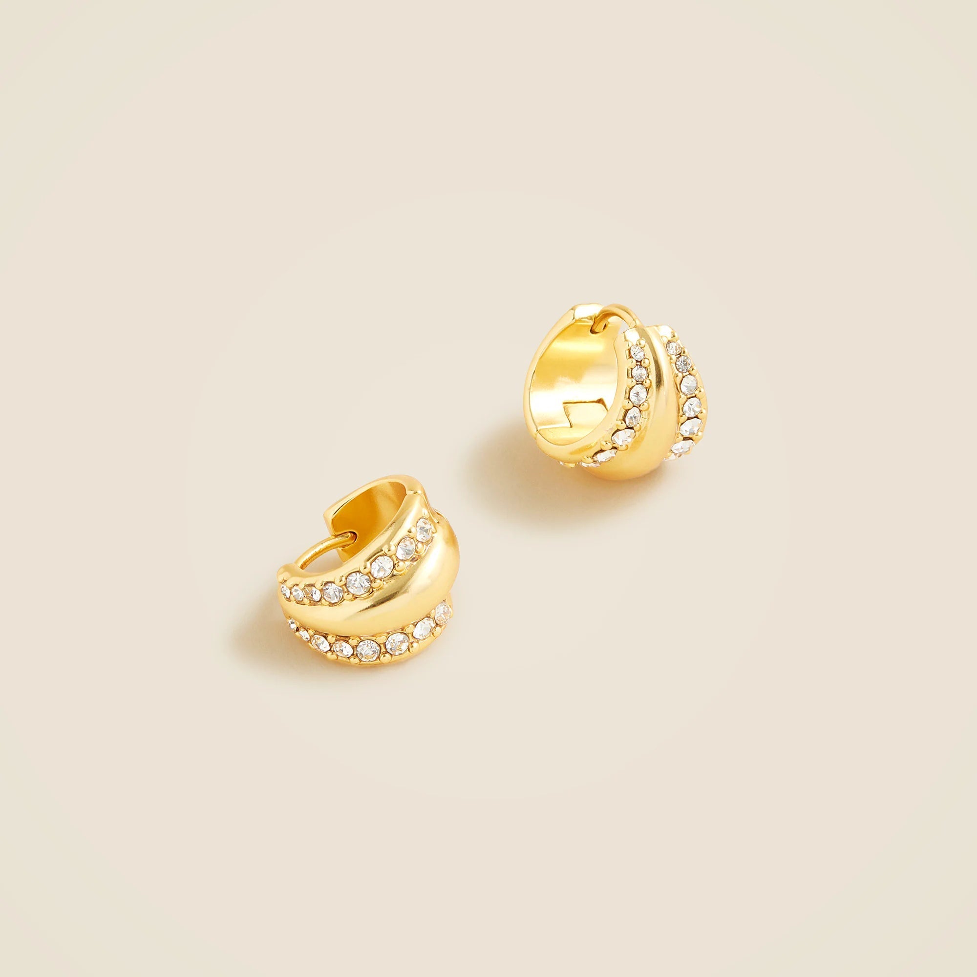 Add sparkle to special days (and every day!) An elevated take on hoop earrings, we embellished this style with tiny pavé crystals. Want to keep your jewelry looking like new? We recommend removing it before showering or exercise and putting it on after applying hair products or perfume. To clean your pieces, polish them with a soft, dry cloth—and when not wearing, store them in a pouch or jewelry case.