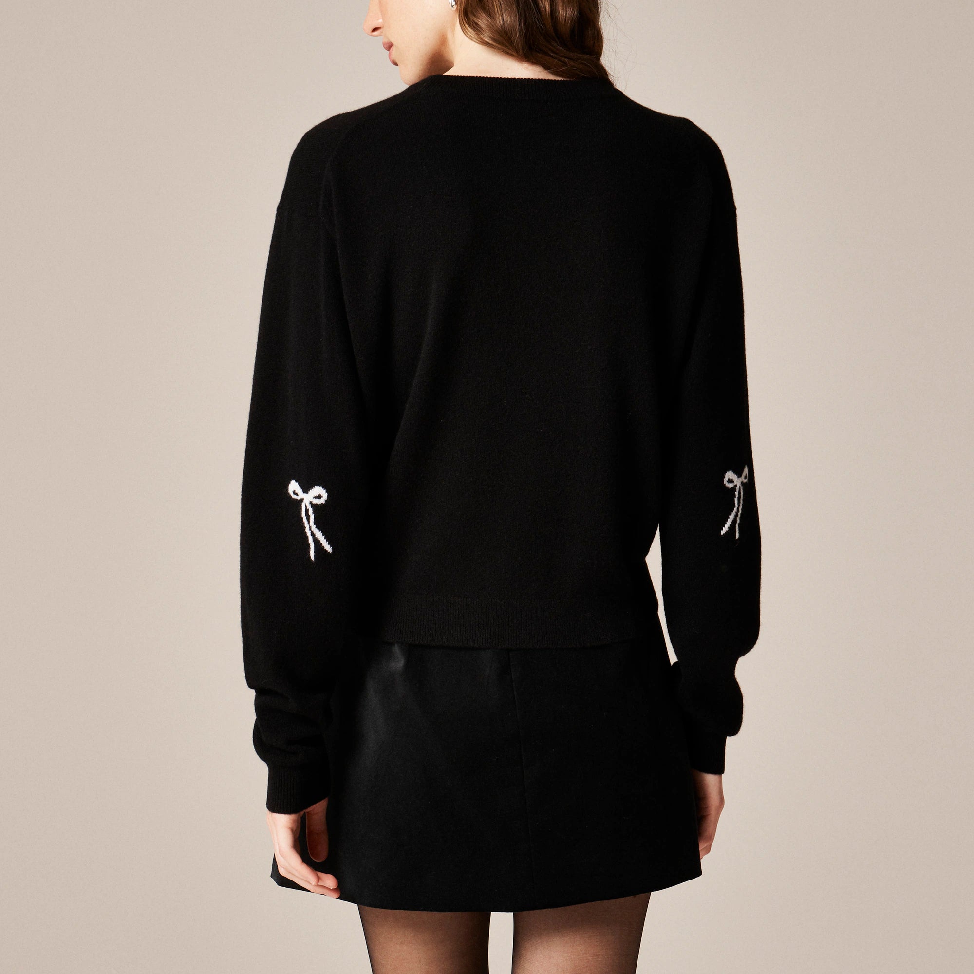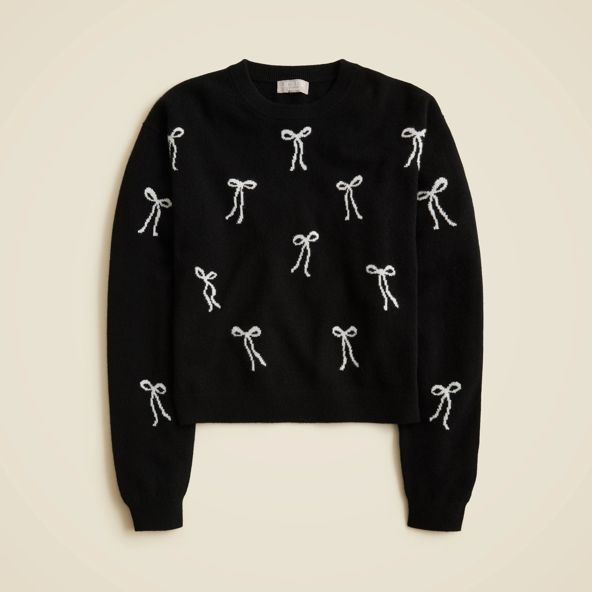 When you think of cashmere, you think of J.Crew. We've spent decades fine-tuning our collection, sourcing the softest, longest-lasting fibers and perfecting every detail from fit to fabric to color. And our latest crewneck is no exception, with a perfected fit that's relaxed but not too long and ribbed side panels for a streamlined touch. Plus, an allover bow jacquard detail that adds a feminine touch.