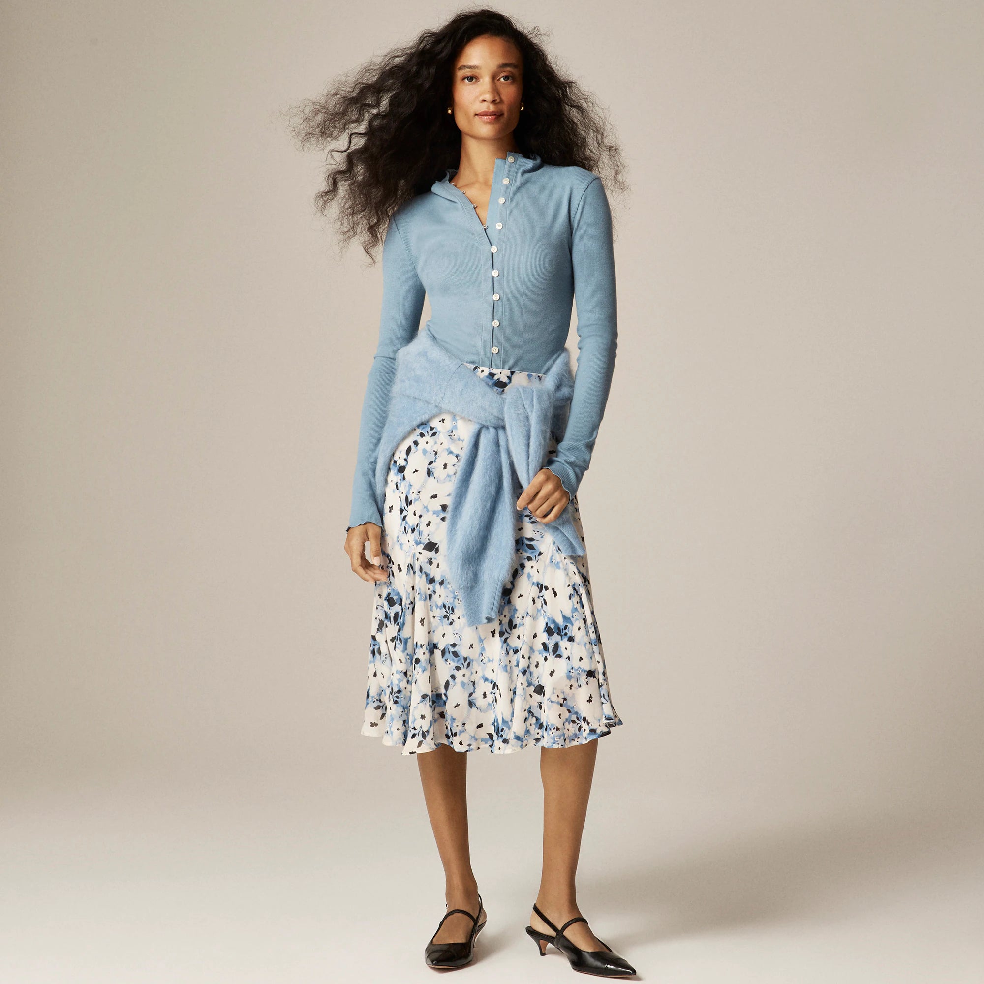 A sweet silhouette that's all about the details. This stylish layer has ruffle-trim detailing, rouleau button loops and a subtle mockneck. It looks just as good on its own as it does over camisoles, turtlenecks and pretty much everything else we can think of. Plus, it's crafted from our new perfect rib fabric that has a softly textured finish and just the right amount of stretch.