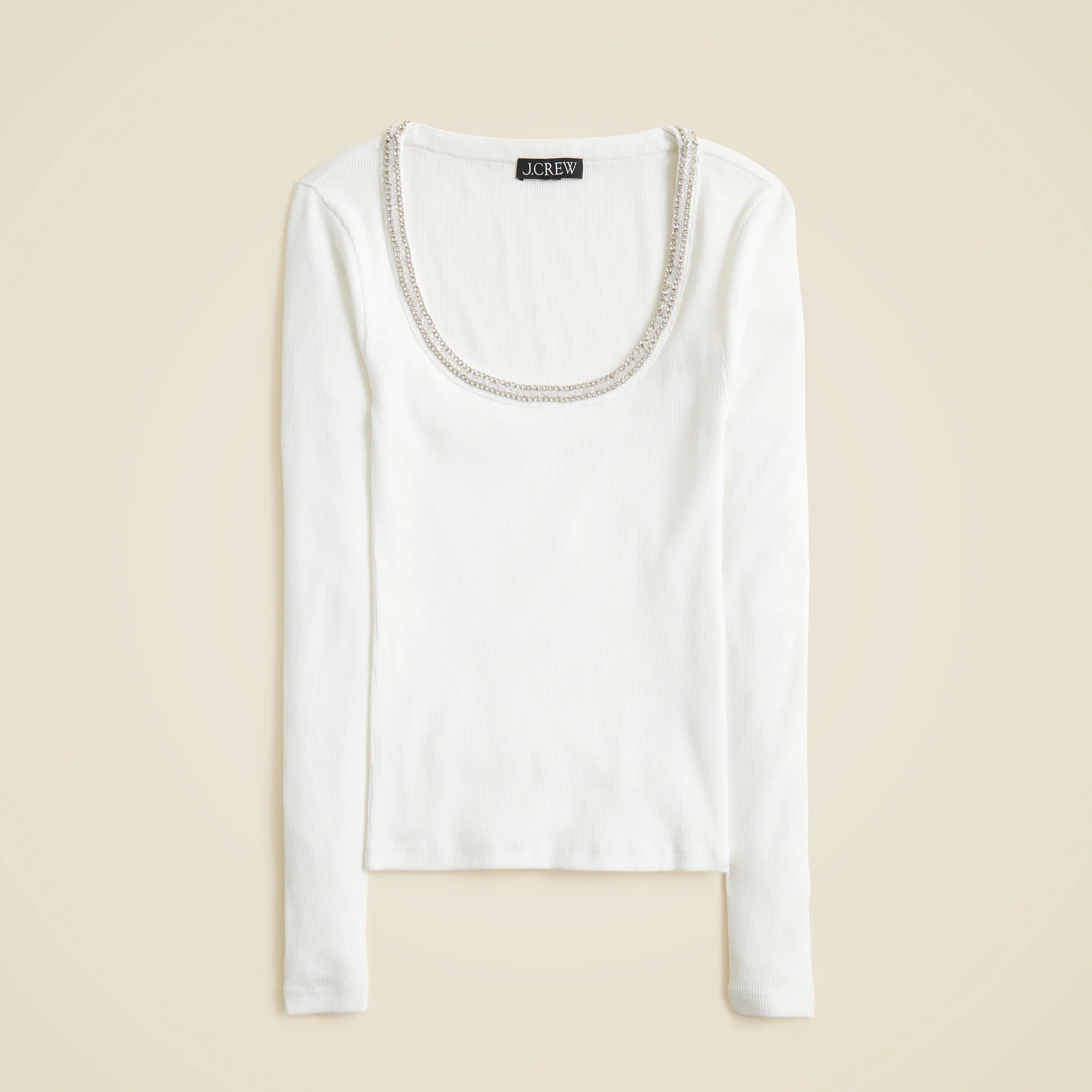 An elevated take on the base layer. Made from our perfect rib fabric—a lightweight cotton blend with a softly textured finish and just the right amount of stretch—it's designed to fit close to the body and comes with crystal details along the neckline for a hint of sparkle.