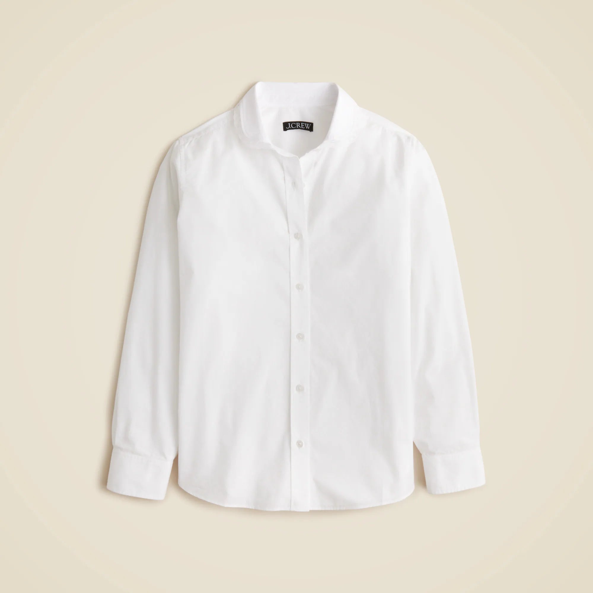 We made the ideal button-up. . .Our design team spent months fine-tuning this new fit. It's cut in a classic silhouette (similar to our Garçon shirt), with slimmer sleeves for an elegant, modern shape that layers effortlessly under blazers and sweaters. Made from our crisp, customer-favorite cotton poplin, it's equal parts comfortable and refined—and feels like it was tailored just for you. This version also comes with lace-trim details along the collar for an extra-feminine twist.
