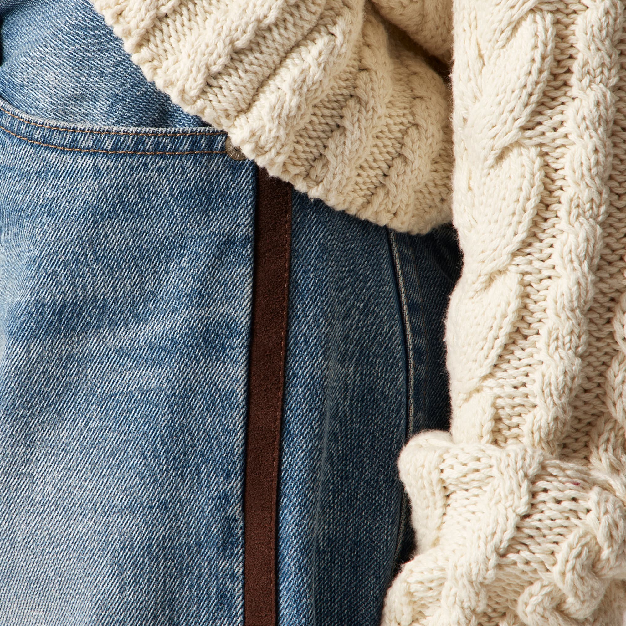 Polished and effortless, all at once. Based off of a pair of vintage men's jeans, this easygoing fit has a sleek, straight leg, a suede stripe along the side seam and a slouchy rise for an '80s-inspired vibe. Plus, it's crafted from 100 percent cotton denim with no added stretch for an old-school look and feel that molds to your shape over time (aka only gets better with every wear).