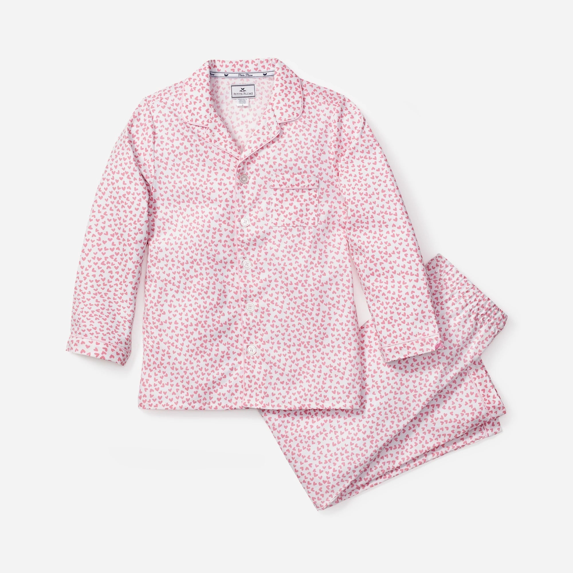 Petite Plume was inspired by the desire to create sophisticated and comfortable sleepwear in the most exquisite fabrics available. With Petite Plume, your family will be tucked in love and off to dreamland. Bonne nuit. This classic pajama set is accented with contrast piping and finished with pearl buttons. The sleepwear is made from the finest-quality cotton and blended with just enough inherently flame-retardant fiber to allow it to pass strict CPSC flame-retardant laws without using harmful chemicals. The fabric is brushed for added softness, making the sleepwear feel absolutely luxurious, getting cozier after each wash.