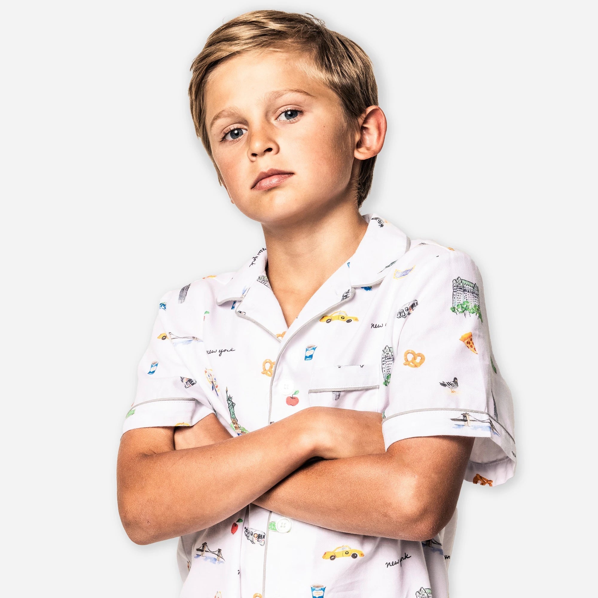 Petite Plume was inspired by the desire to create sophisticated and comfortable sleepwear in the most exquisite fabrics available. With Petite Plume, your family will be tucked in love and off to dreamland. Bonne nuit. This classic short set is accented with contrast piping and finished with pearl buttons. The sleepwear is made from the finest-quality cotton and blended with just enough inherently flame-retardant fiber to allow it to pass strict CPSC laws without using harmful chemicals. The fabric is brushed for added softness, making the sleepwear feel absolutely luxurious, getting cozier after each wash.