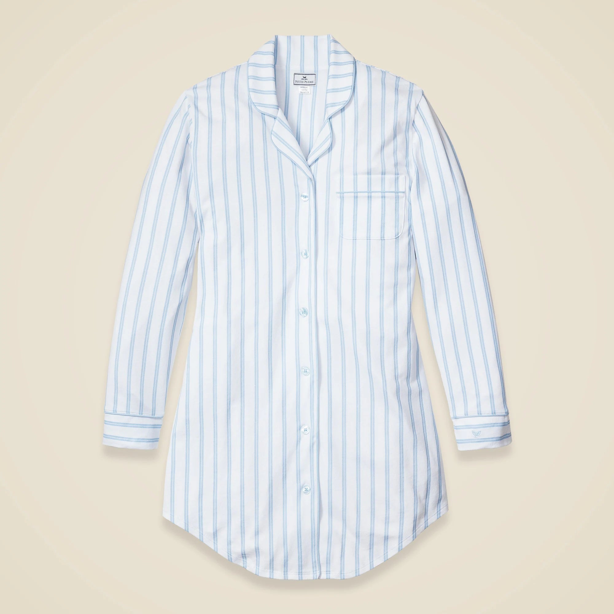 Petite Plume™ women's nightshirt in luxe Pima cotton with french ticking
