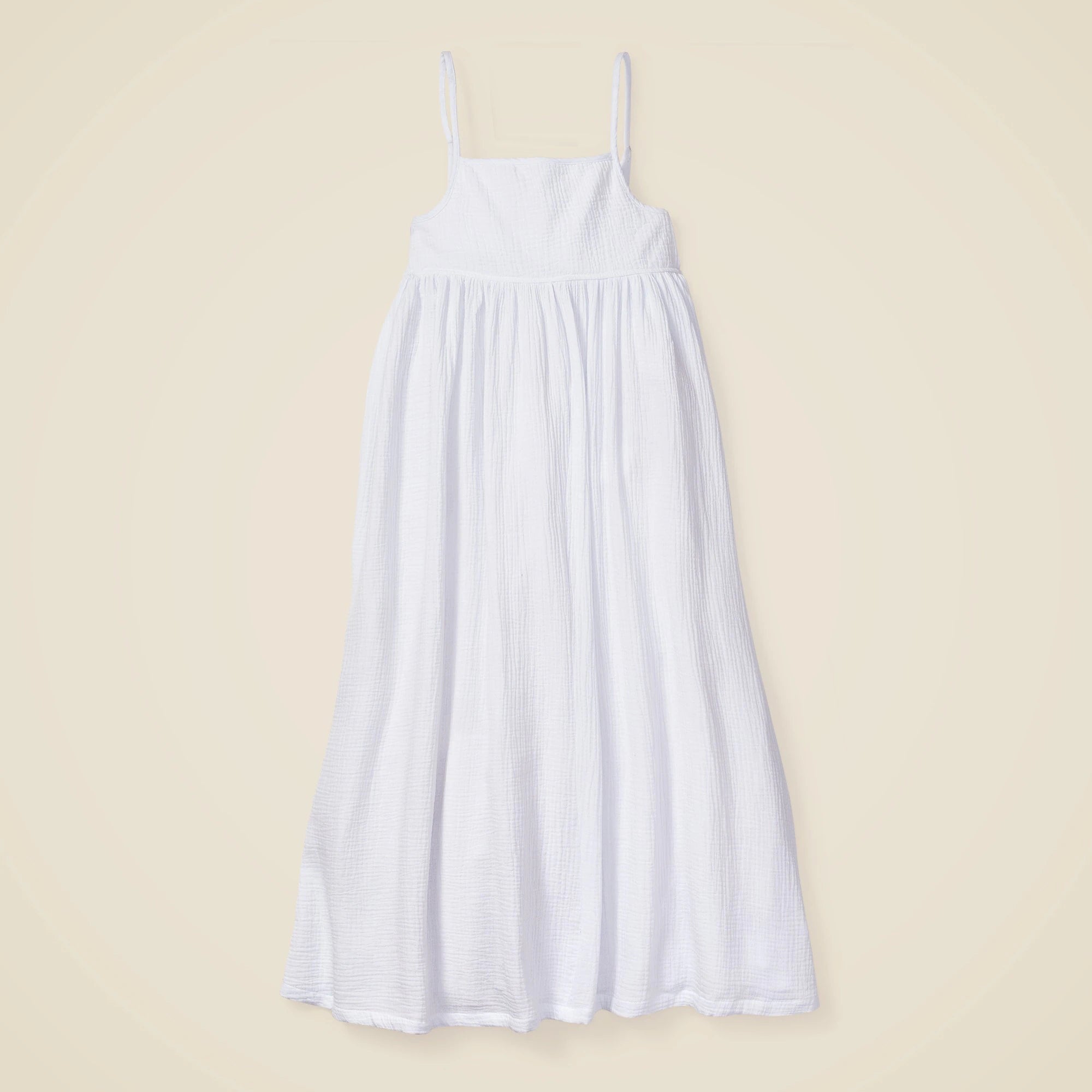 Petite Plume was inspired by the desire to create sophisticated and comfortable sleepwear in the most exquisite cotton available. With Petite Plume, your family will be tucked in love and off to dreamland. Bonne nuit. As if your beloved warm-weather, spaghetti-strap sundress were remade into the perfect nightgown. Hewn in lightweight cotton gauze, it features a soft, empire waist, feminine, gathered draping and a midi hemline that's compatible with warm spring and summer nights.