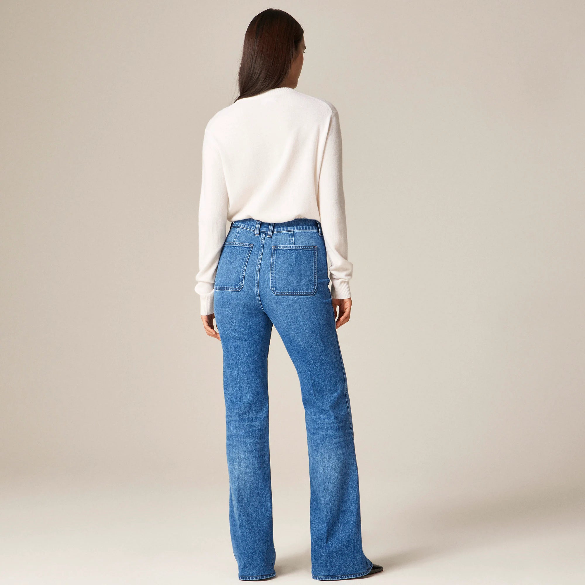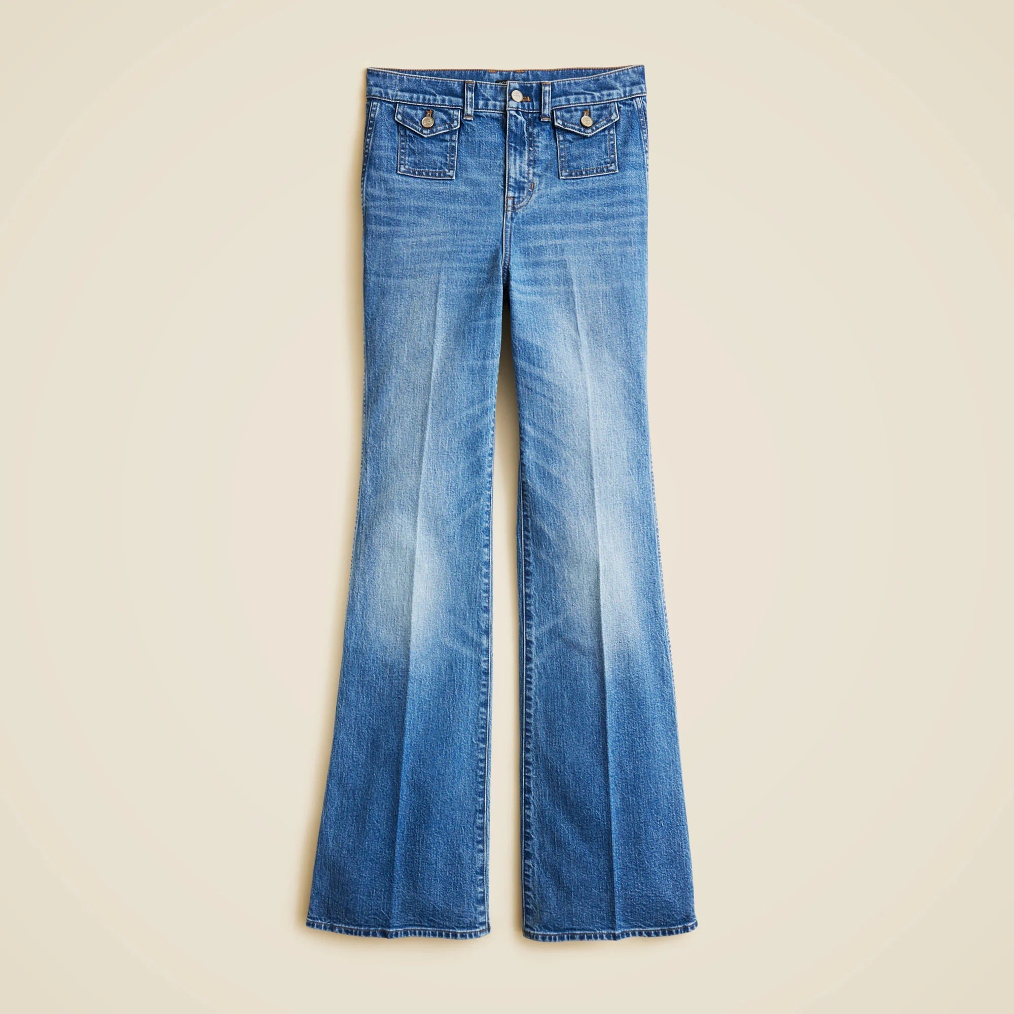 A timeless cut with a touch of retro charm. Slim through the hip and thigh, these high-rise jeans kick out into a subtly dramatic flare. They come with flap pockets for some vintage charm, plus a leg-lengthening 32" inseam—in other words, we recommend wearing these with your favorite pair of heels to avoid any dragging. Finished in soft cotton denim with just a touch of stretch, they're the ideal pair for effortless day-to-night dressing.