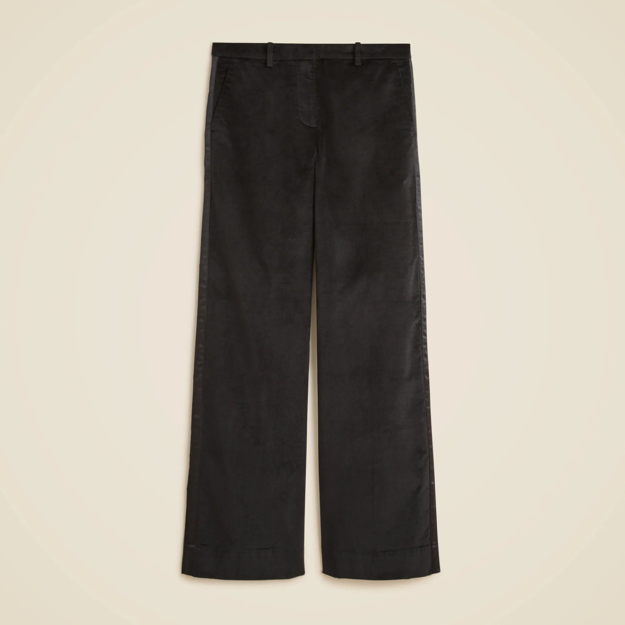 A tailored silhouette gets a luxe update. Designed with a comfortable mid-rise fit, this piece is perfect for adding a touch of texture to any wardrobe. It comes with a wide, relaxed leg that has a 30" inseam and falls just past the ankle. Detail we love: an unexpected satin stripe down the side for extra dimension. It's crafted from smooth, soft velvet fabric that's ideal for all things fall and holiday. Plus, it pairs perfectly with the matching vest for a low-effort, high-impact look.