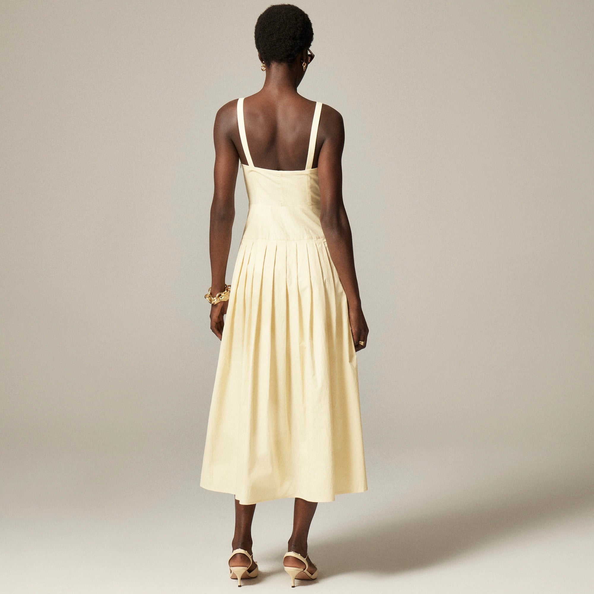 One and done. This pretty, flattering dress features a wider waistband with released pleats for a polished touch. Plus, it's crafted in a naturally textured cotton blend that looks a little bit lived-in (not to mention great straight out of your suitcase).