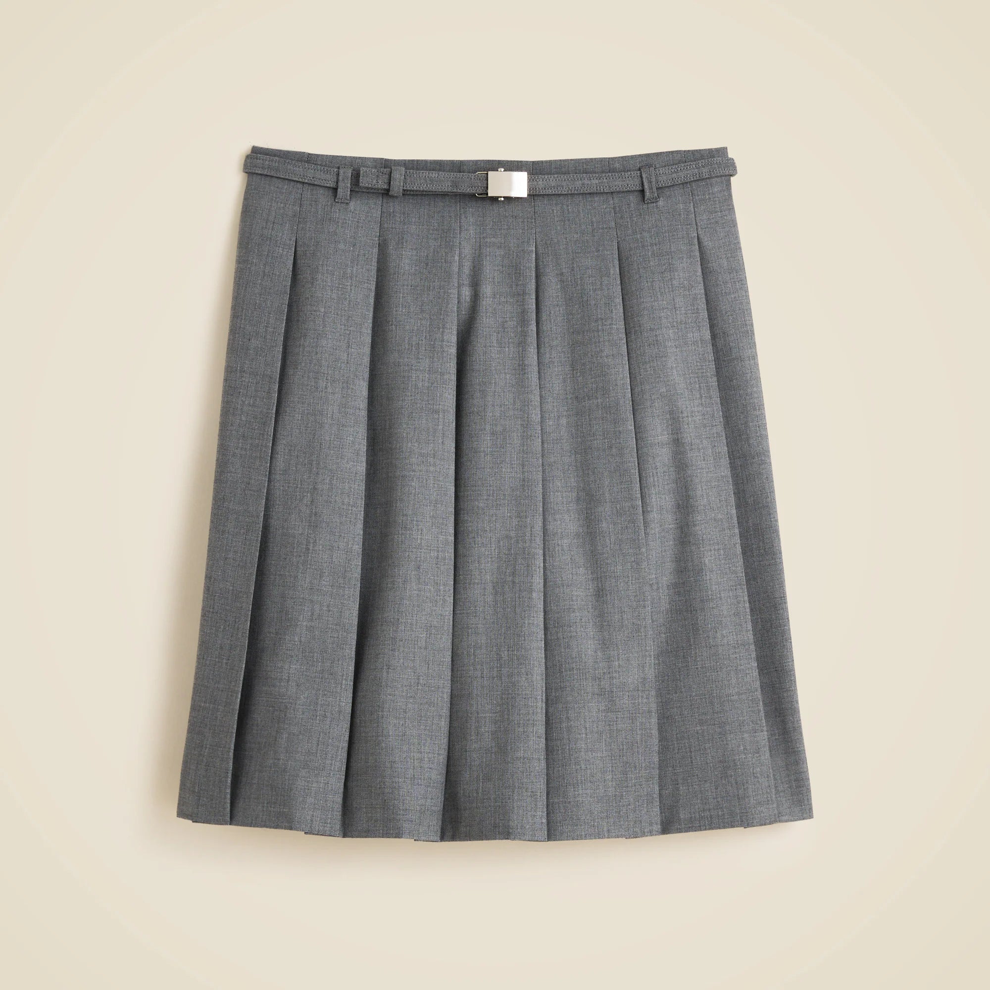 A-plus in style. An ode to classic campus style—with a smart twist. This tailored skirt comes with a sleek belt detail and polished pleats, plus it hits right at the knee. It's crafted from a structured suiting fabric for extra refinement.