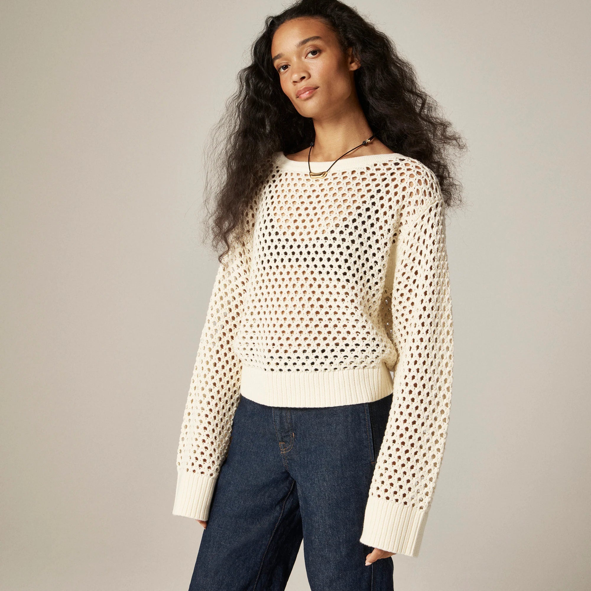 The perfect post-sunset sweater. Designed with a classic boatneck, this breezy style is knit in an intricate pointelle texture that shows off your base layer. Pack it in your beach bag and throw it on after a swim for a bit of coverage.