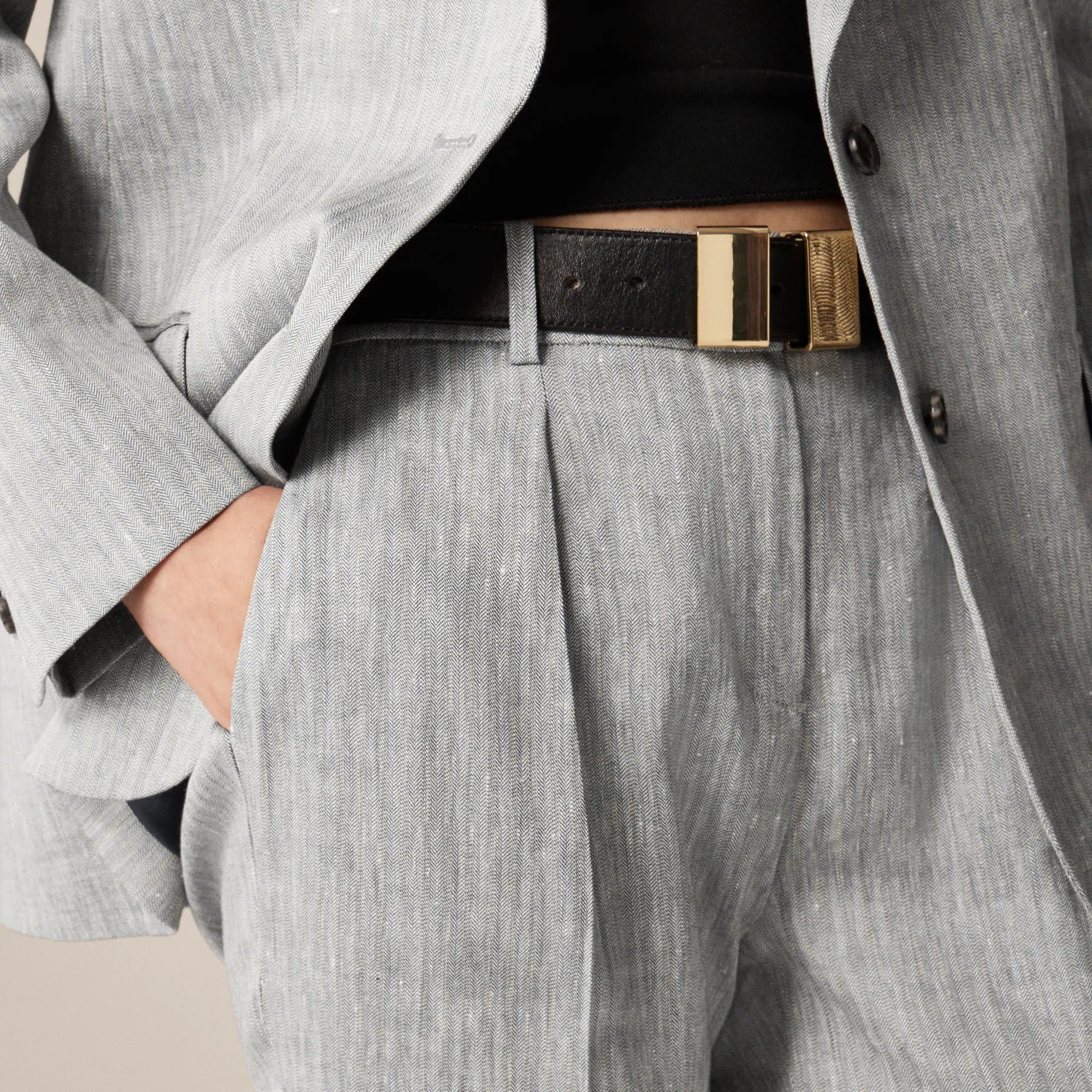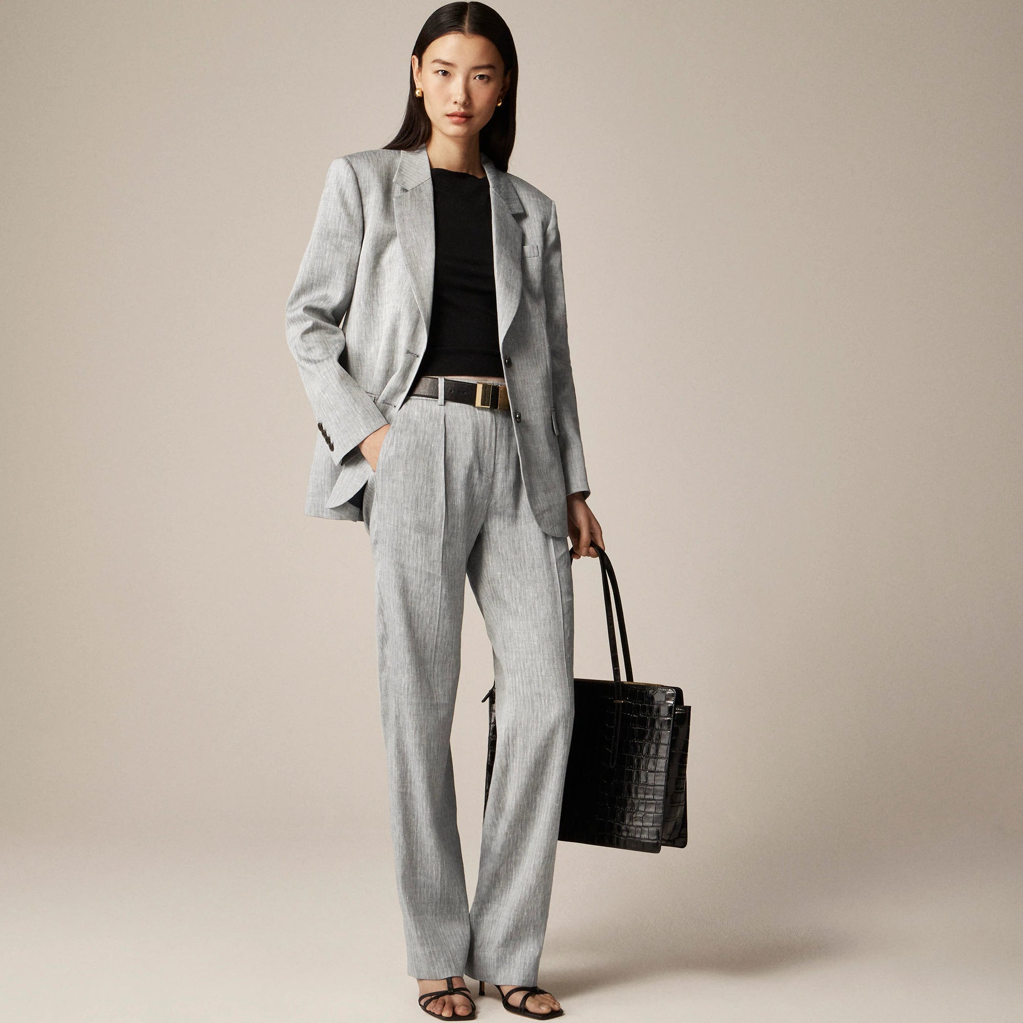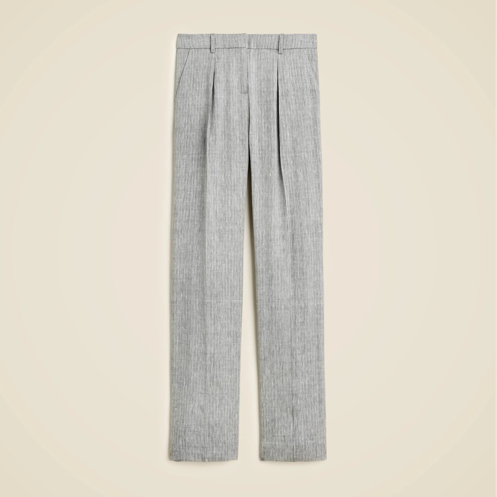 Tailored details meet luxe fabrics. A new take on the trouser, with polished pleats down the front and a classic, straight leg that pairs perfectly with everything in your closet. Plus, it's crafted in a luxe linen blend with a subtle herringbone texture.