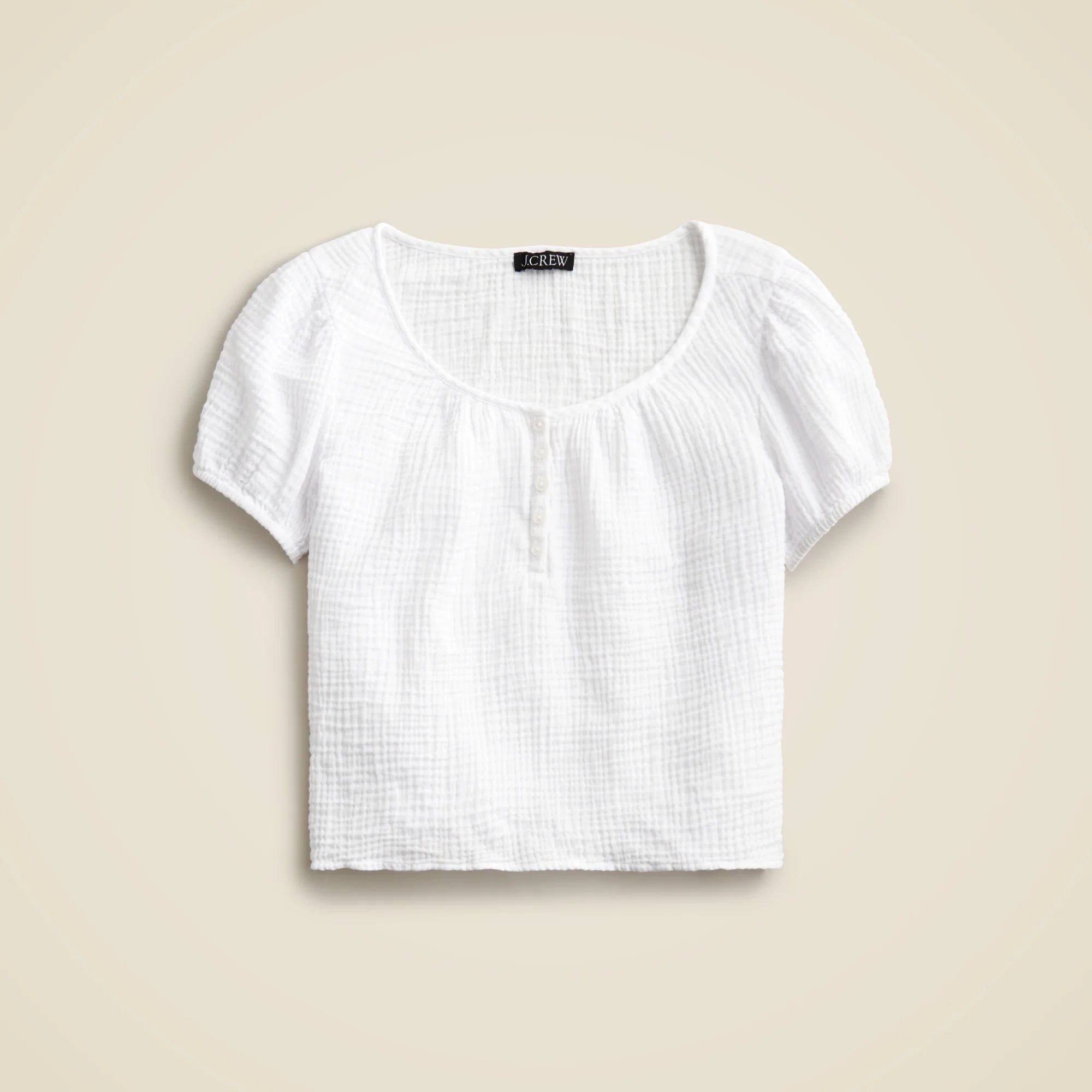 The everyday henley, made effortless and airy. Crafted in breathable cotton gauze, this popover shirt comes with a few small buttons down the front and subtle puff sleeves for a relaxed-yet-polished look. In other words, it's the kind of piece that pairs perfectly with anything from denim shorts to breezy skirts.