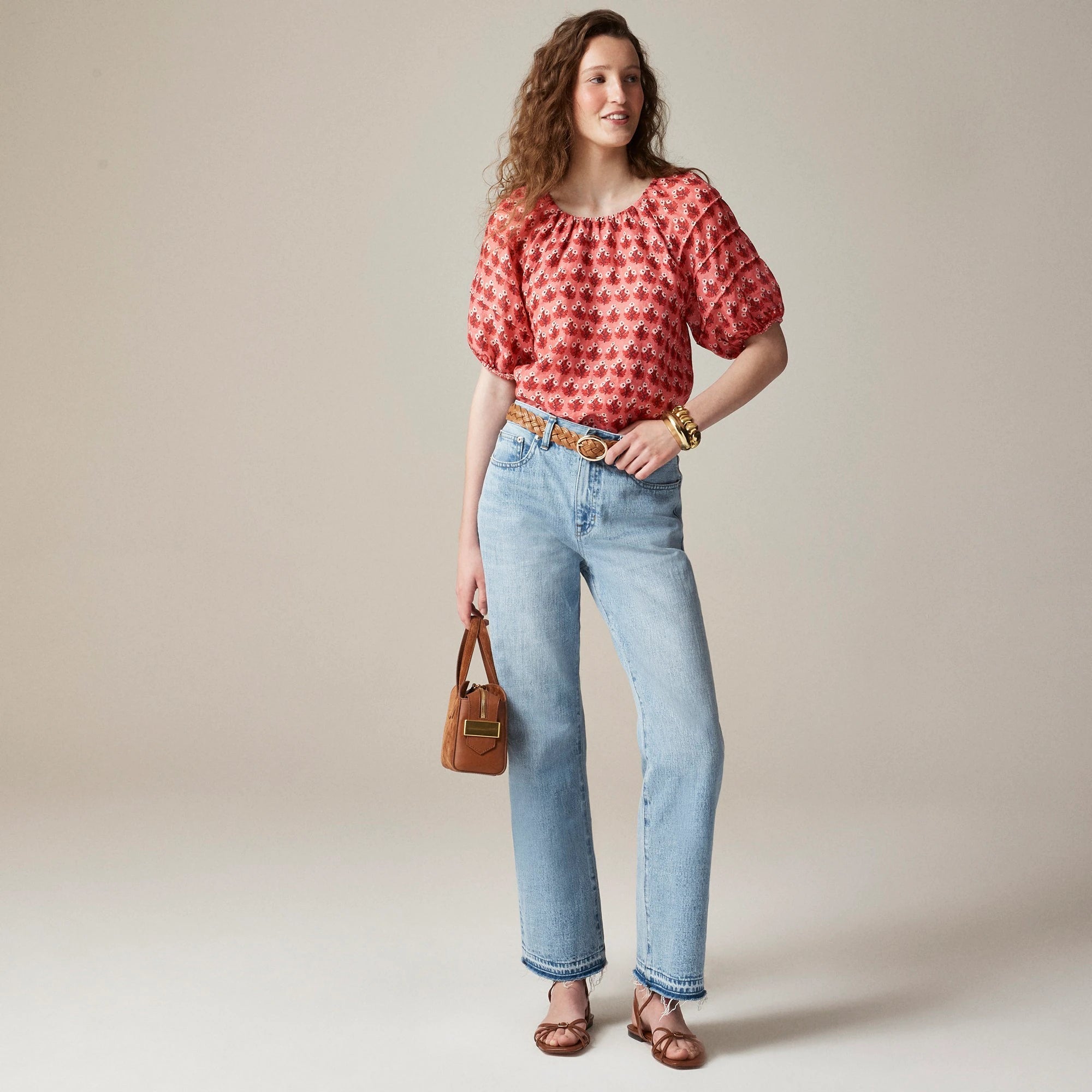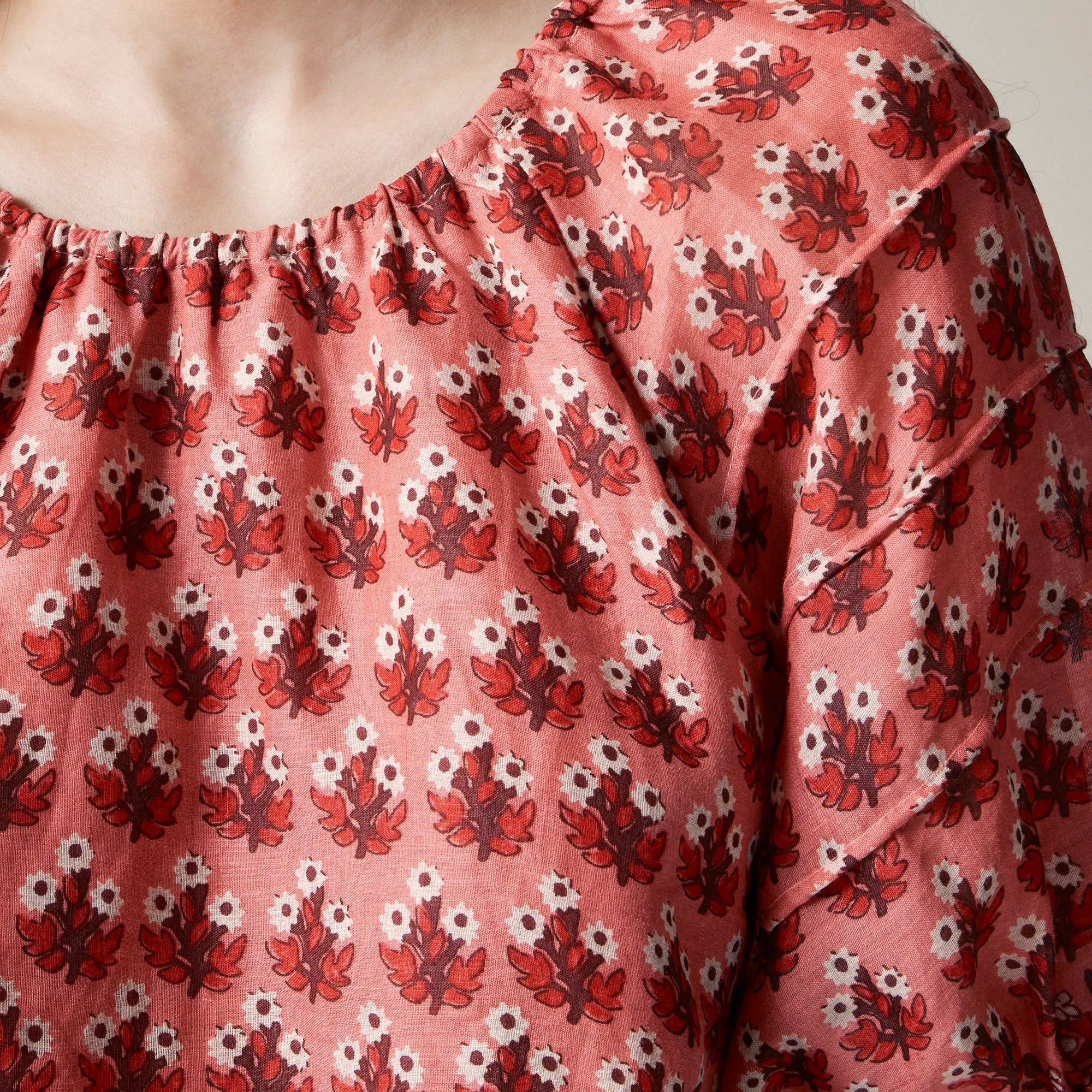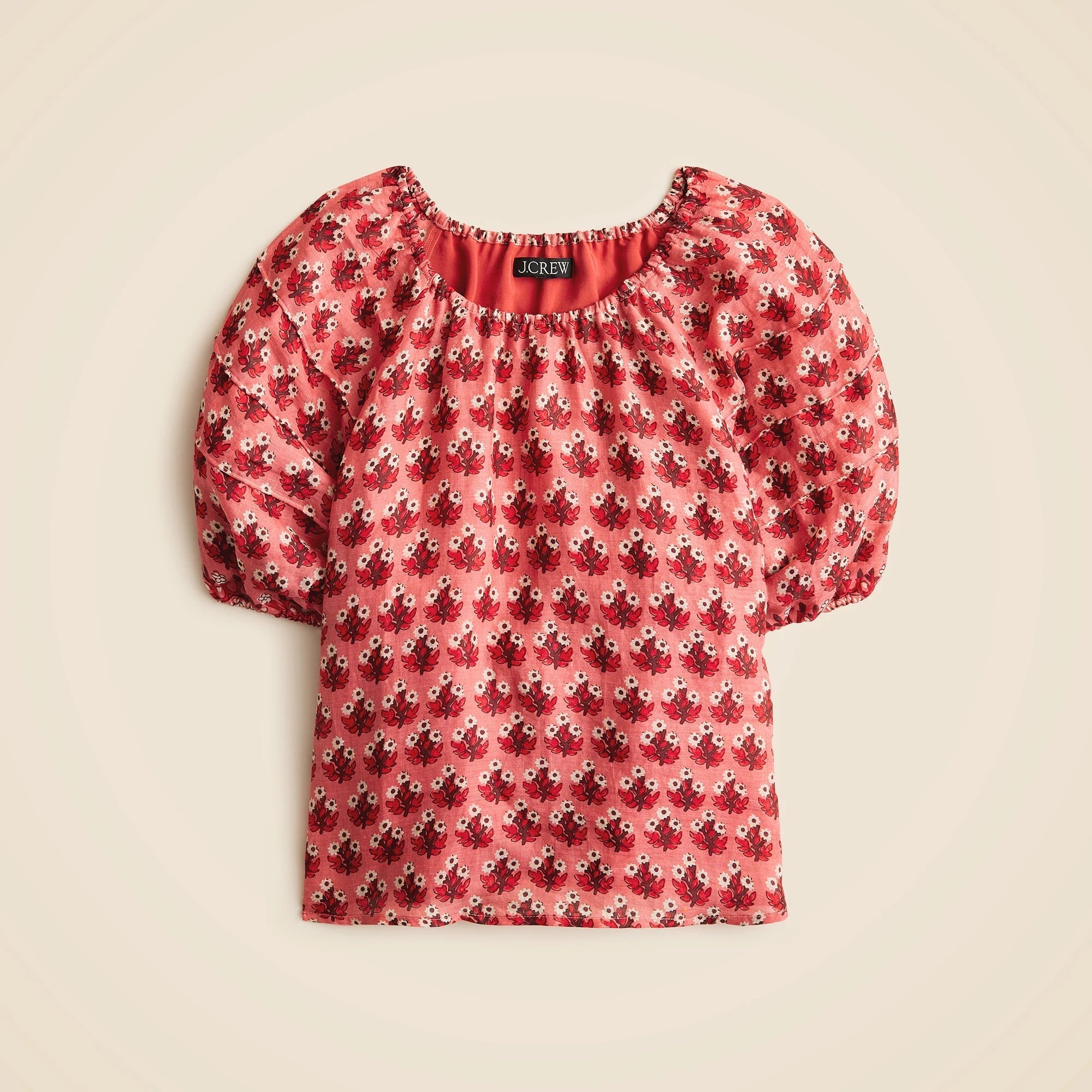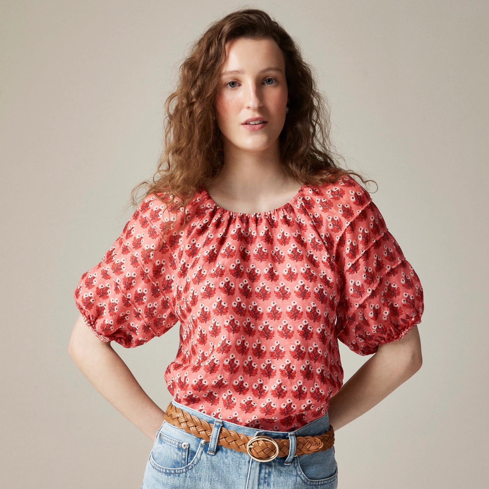 Sweet and vintage-inspired. Crafted from light-as-air ramie that's like an alternative to linen, it comes with a gathered neckline and puff sleeves complete with pintuck details.