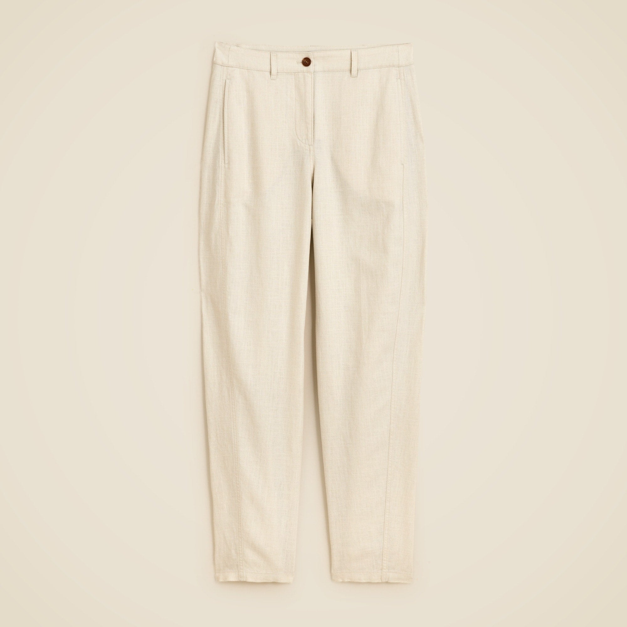 Relaxed-yet-tailored with a trending shape. Made from a washed, textured linen blend with a subtle slubby finish for added character, this summer staple has an easy fit with a bit of a bow shape, a gently tapered hem and a full-length leg. It's laidback, versatile and designed to pair perfectly with everything from lightweight camis to crisp button-ups.