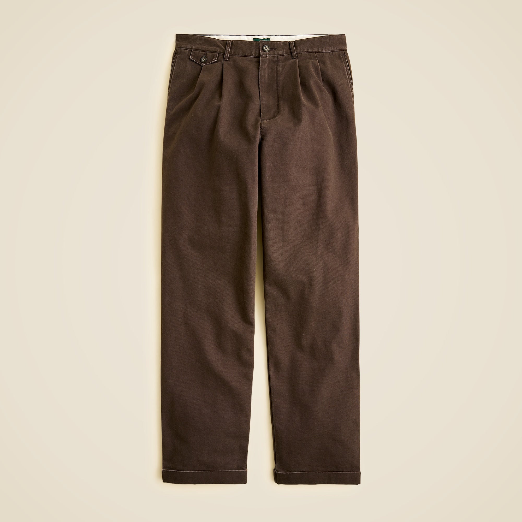 A classic chino with campus roots. This chino is crafted in washed 100 percent cotton canvas that softens over time, with double pleats up front, affixed cuffs at the hem and a relaxed fit through the hip and thigh. The clean lines nod to vintage tailoring and the washed feel keeps it unfussy. Just add loafers and an oxford shirt.