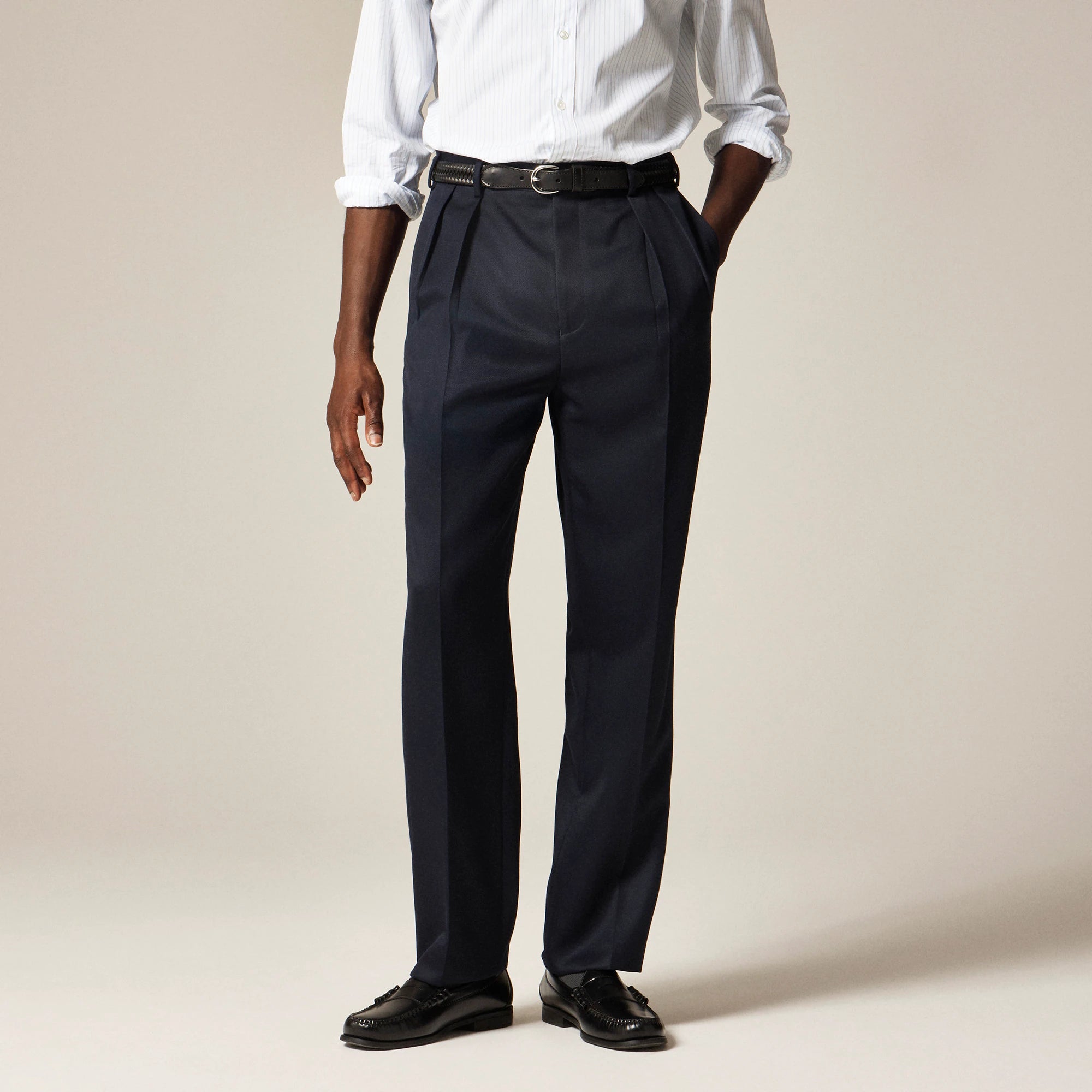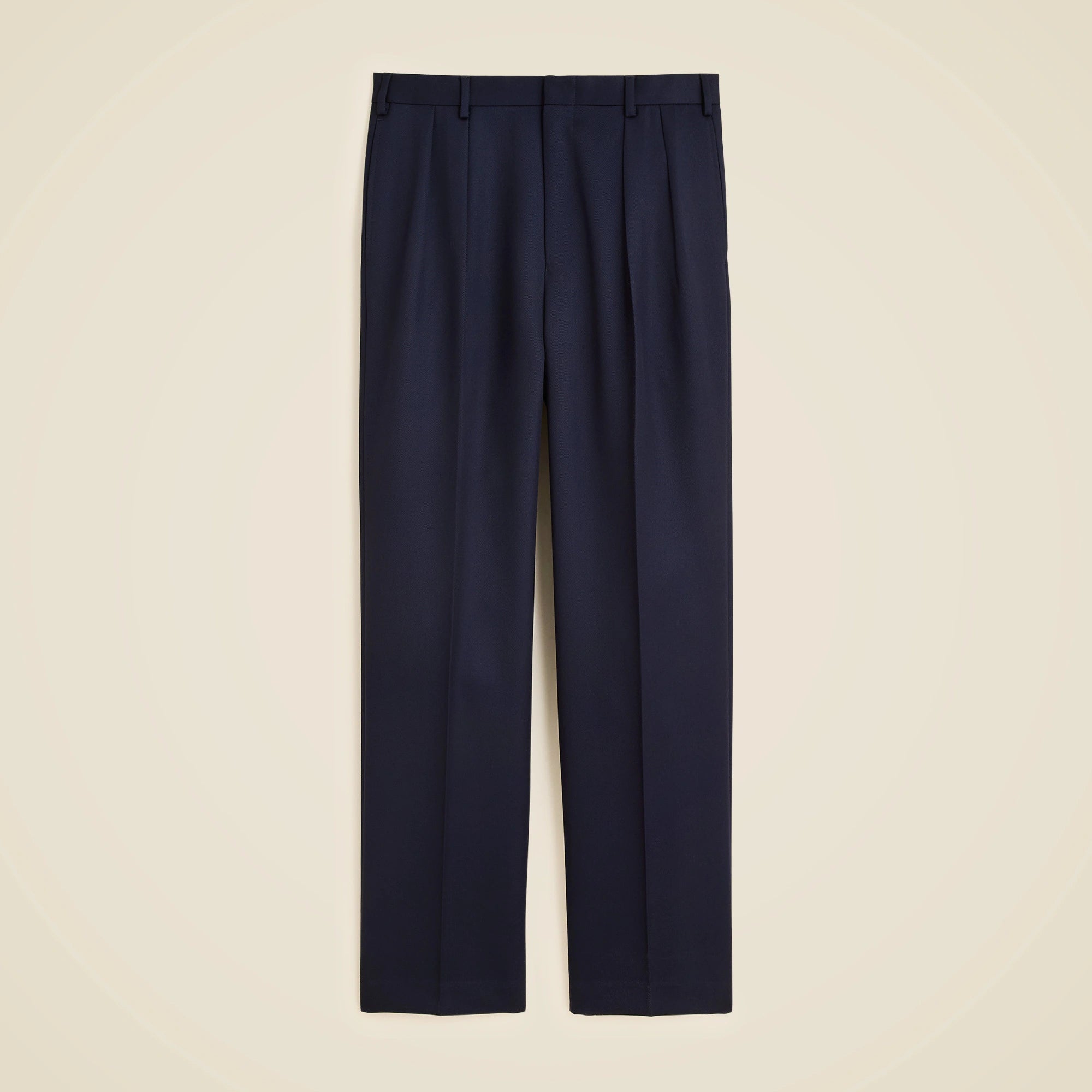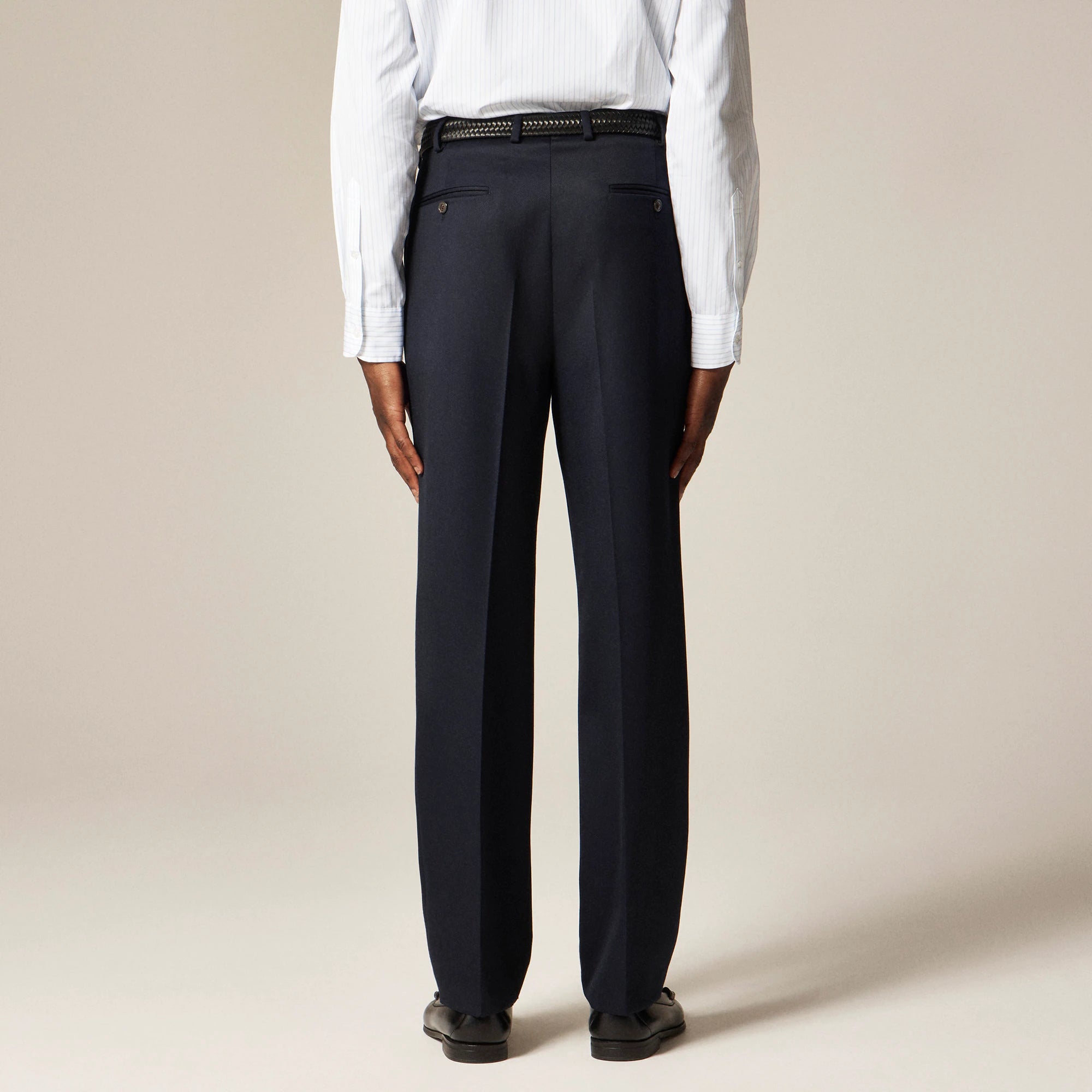 When you want the polish of a suit pant without wearing a full suit, our new relaxed-fit trousers are the answer. We cut this pant with a fuller fit and higher rise with forward-facing pleats in fabric from Vitale Barberis Canonico, a family business established in 1663 in Biella, Italy, that's been turning out top-quality fabrics since the Duke of Savoy became its first recorded customer 15 generations ago. This military-inspired fabric is 100 percent heavyweight wool with a pronounced double twill line and superior drape.