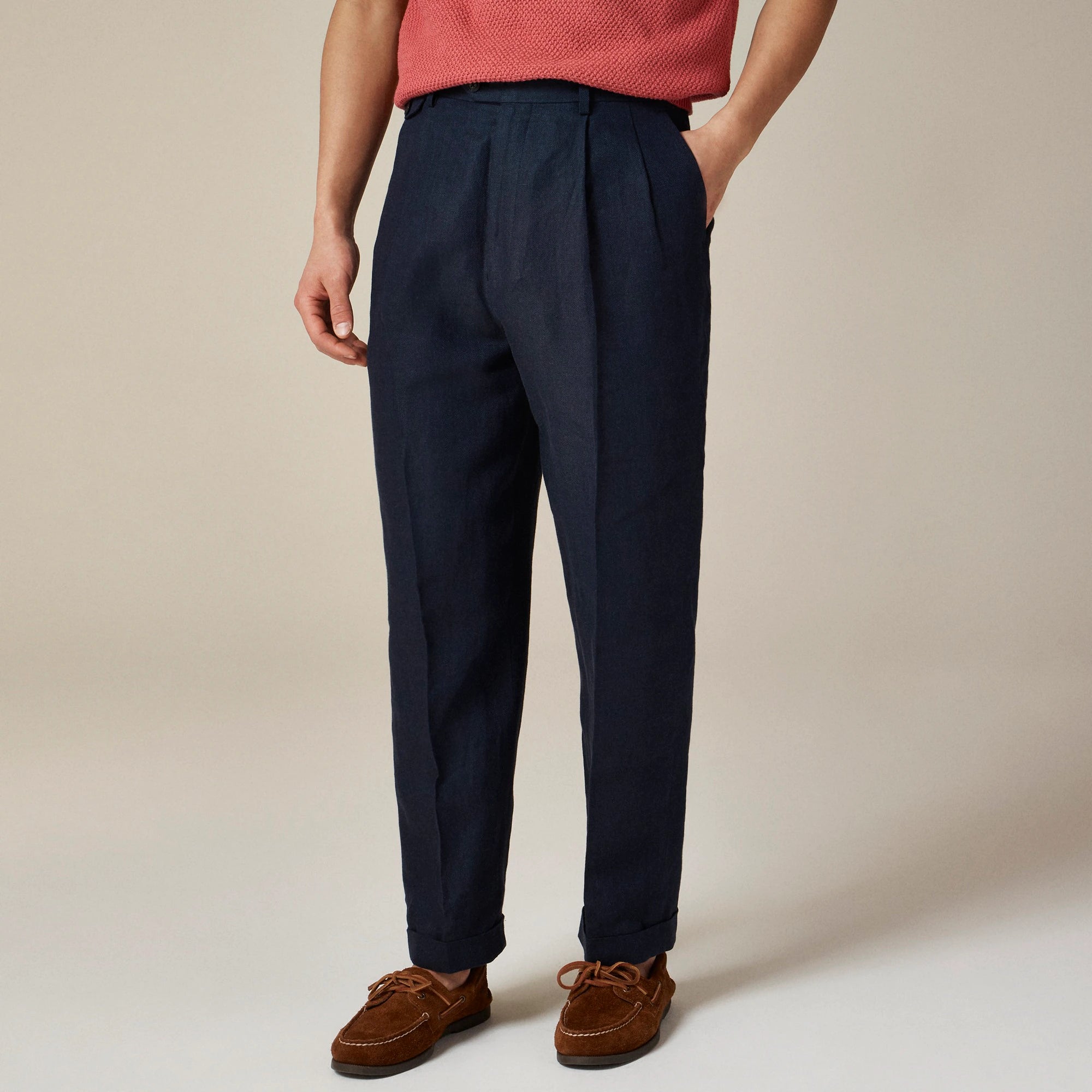When you want the polish of a suit pant without wearing a full suit, our new relaxed-fit trousers are the answer. We cut this pant with a fuller fit and higher rise with double pleats, an extended front-tab closure, a buttoned coin pocket and affixed cuffs. Linen comes from the flax plant and is naturally breathable and strong, making it ideal for warm-weather suits. The herringbone weave adds subtle texture and is easy to dress up or down.