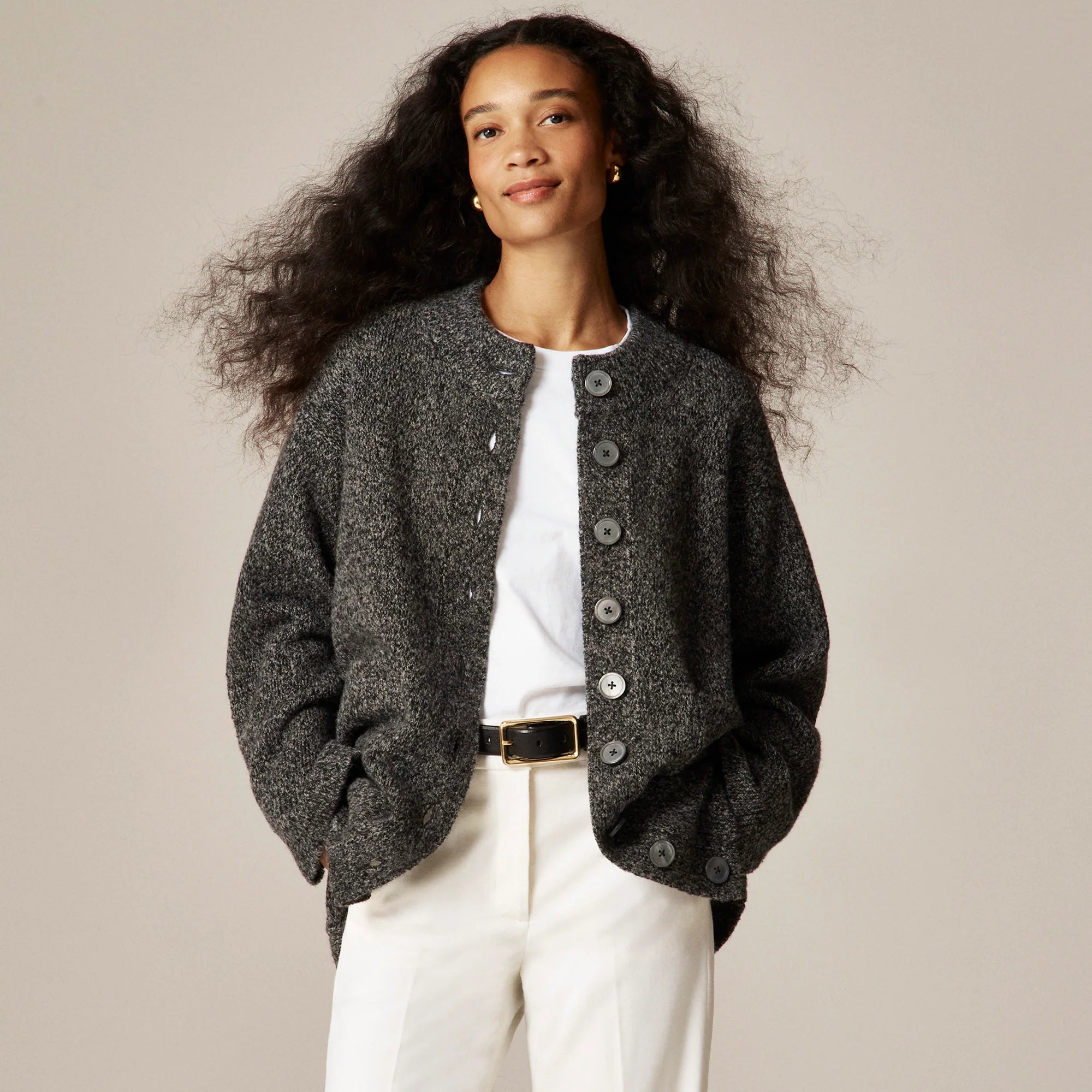 Somewhere between a jacket and a cardigan. . .Knit in a soft-but-sturdy milano stitch, this stylish layer can be worn on its own or over everything from camisoles and T-shirts to party tops and turtlenecks. Detail we love: the loose-fitting arms that make it feel effortlessly stylish.