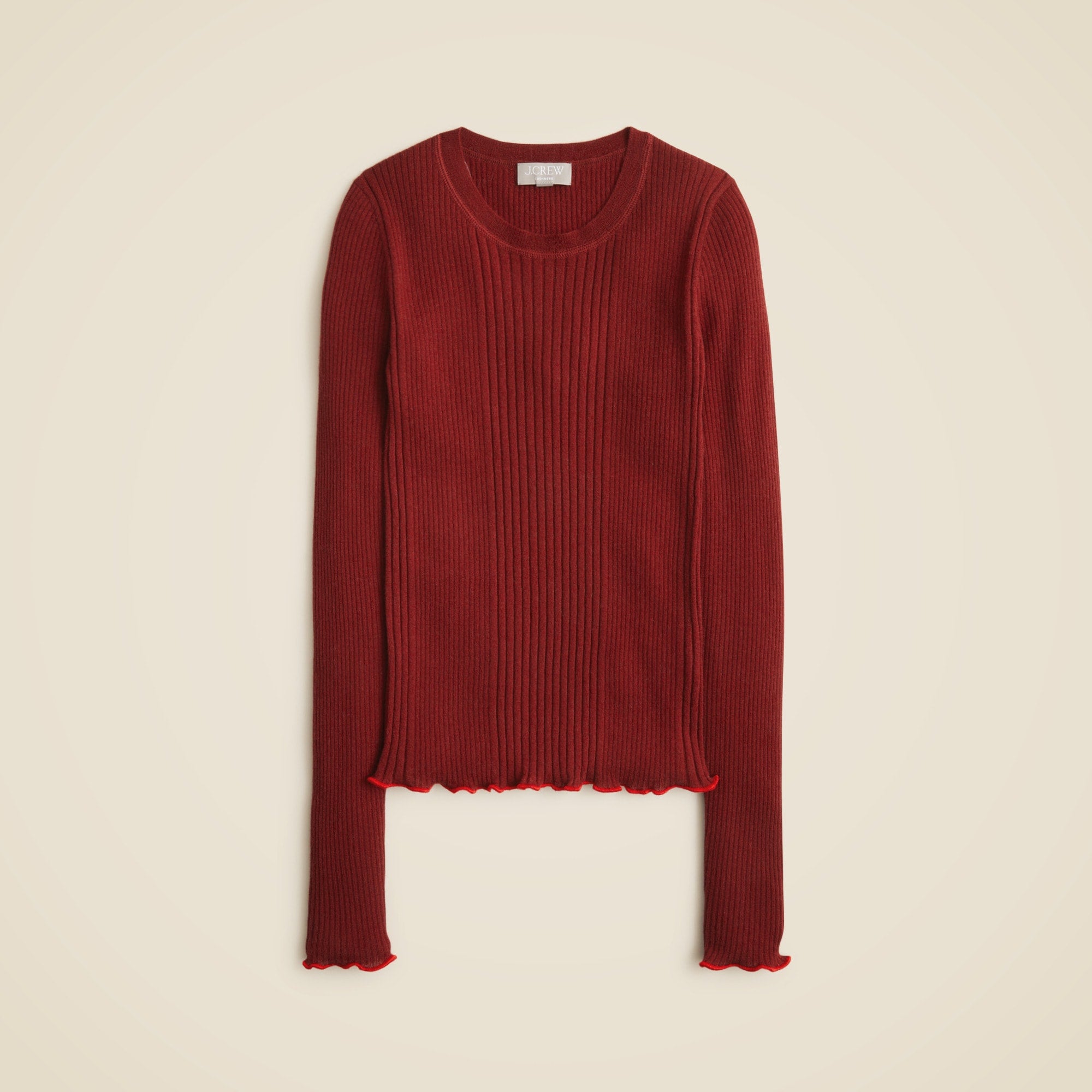The lighter side of cashmere. Impossibly soft, surprisingly breathable and smooth to the touch, our featherweight cashmere quality is the result of decades of expertise. The fibers we source for this finish are extremely fine and hollow on the inside, which gives this sweater a barely there feel that's comfortable in warmer and cooler climates. This style comes with playful lettuce-trim details at the hem and a slimmer-fitting silhouette that makes it the perfect candidate for all kinds of layering.