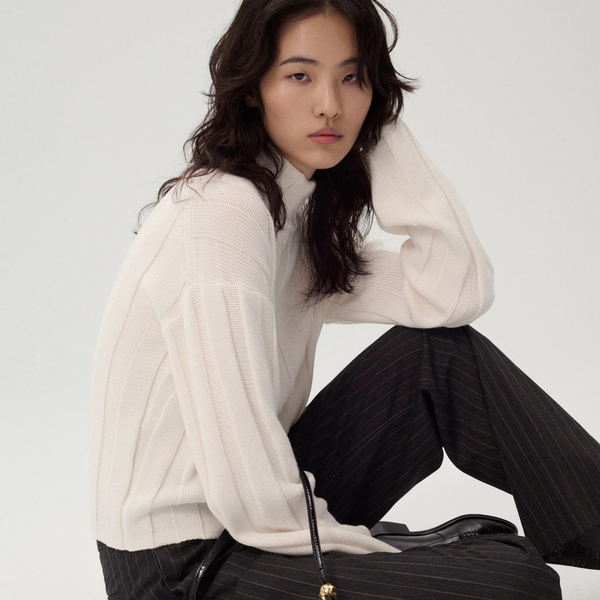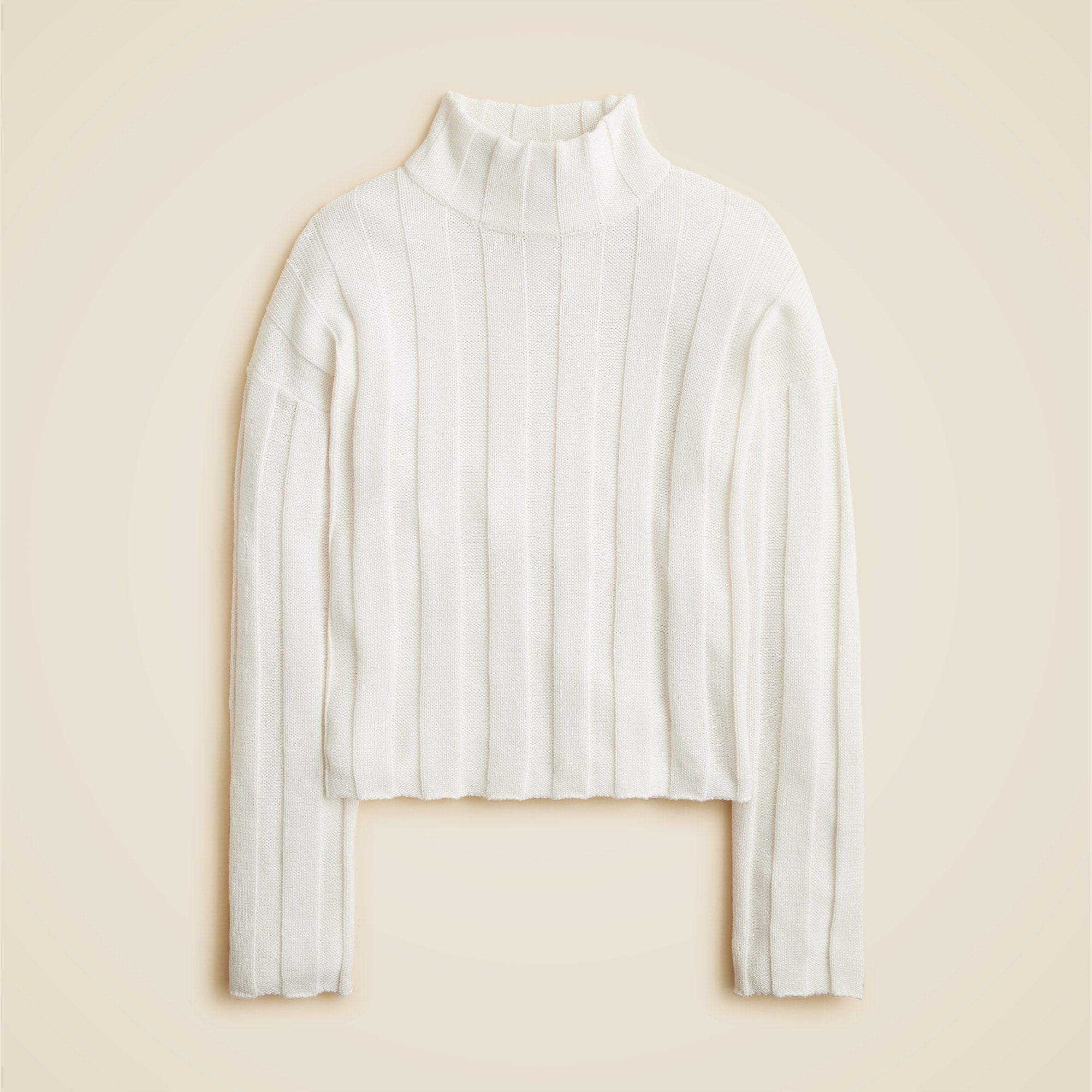 100 percent cotton, 100 percent J.Crew. This instantly classic style comes in with a comfortable mockneck and dimensional wide rib detailing throughout. It has a slightly slouchy shape for that perfectly undone look, in the best way.