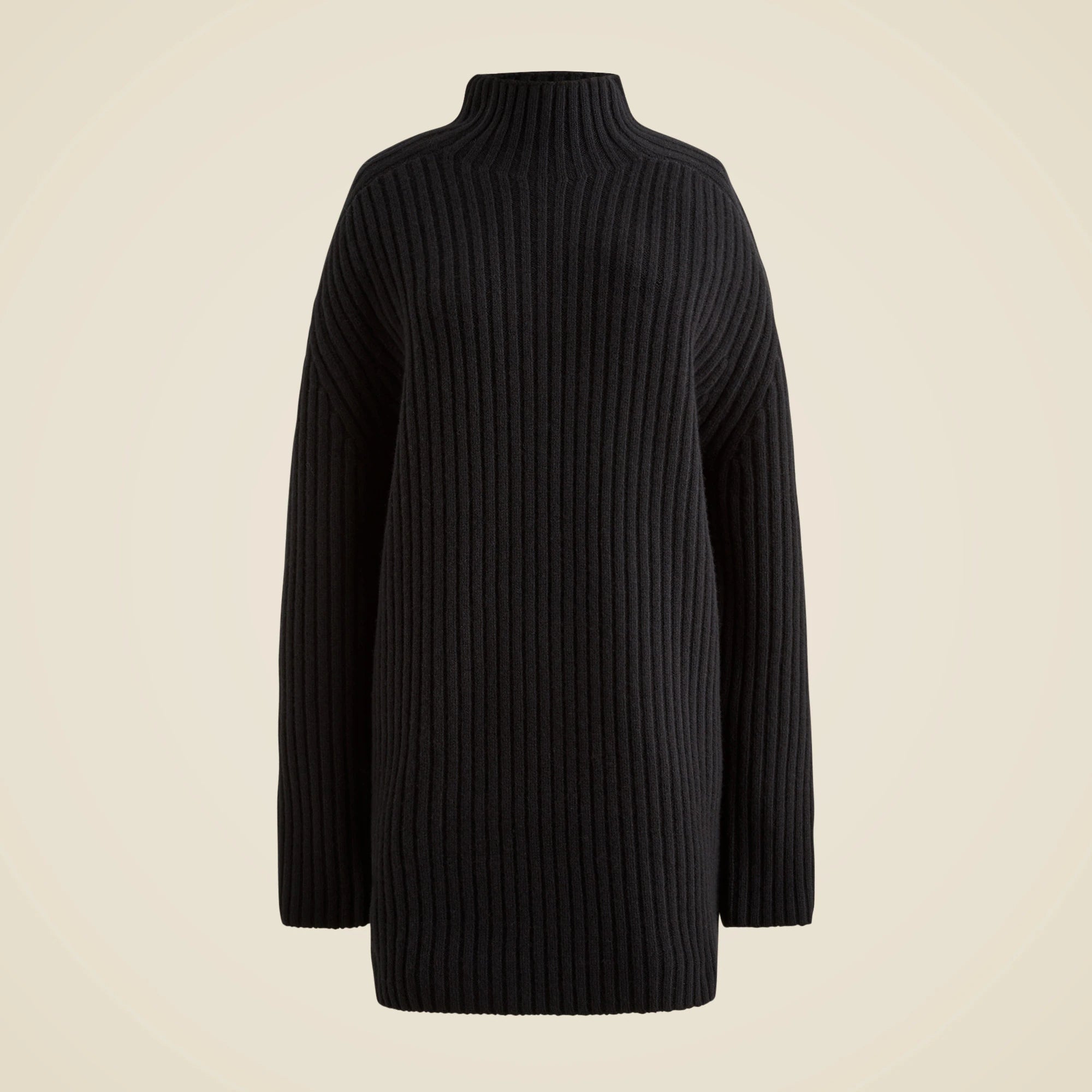 How we're getting dressed these days. . .in comfy, one-and-done styles with a few special details—like an elevated rib texture that adds visual depth. This mini sweater-dress has a cozy turtleneck and relaxed, slouchy fit through the body and sleeves. Plus, it's crafted from cozy 100 percent lambswool yarn that has the softness and warmth you want for cooler days.