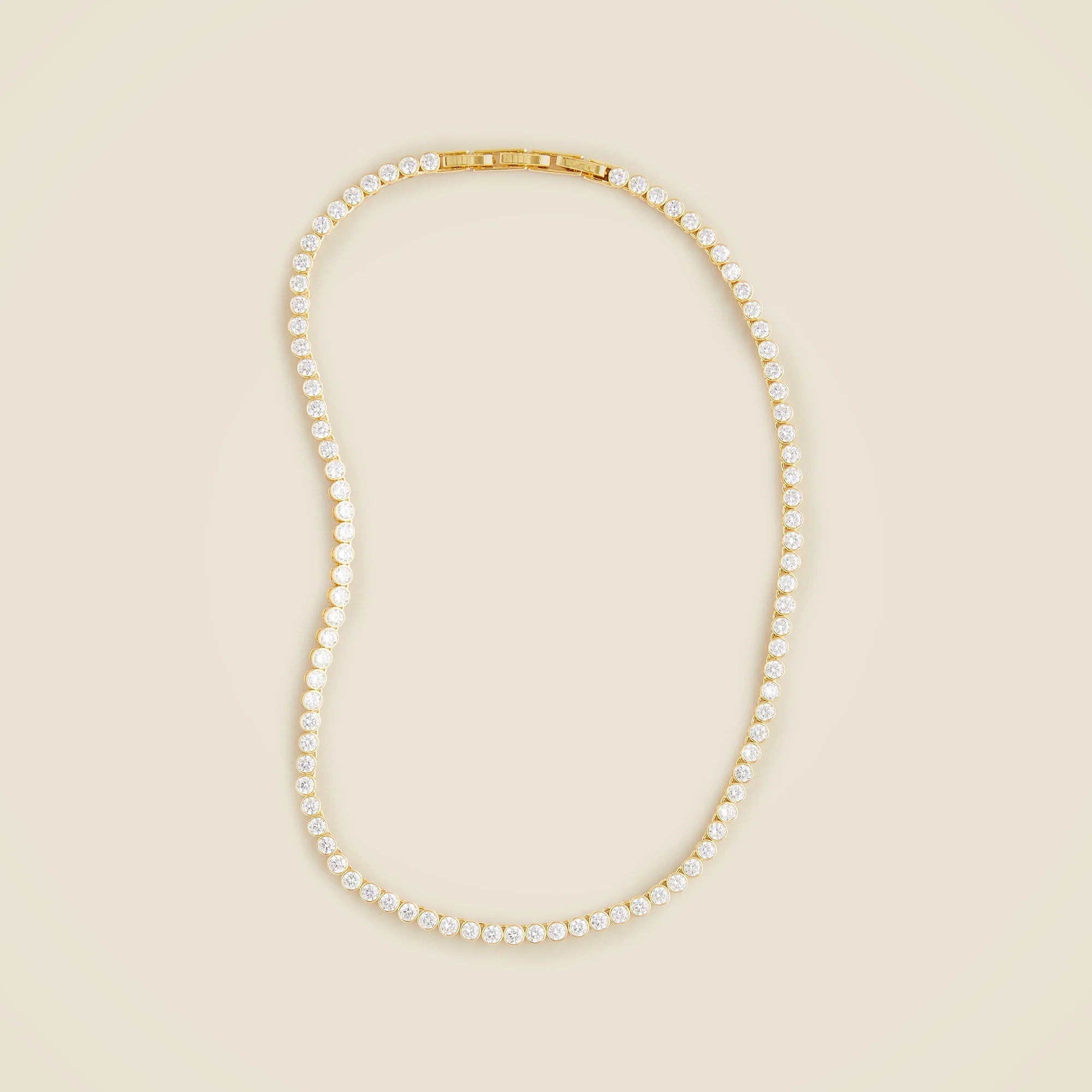 For a subtle hint of shine. . .just add this elegant, bezel-set cubic zirconia necklace to any outfit. Plus, we added a special double clasp so you can adjust the length. Feel-good fact: This style was made using eco-friendly recycled-brass casting. Want to keep your jewelry looking like new? We recommend removing it before showering or exercise and putting it on after applying hair products or perfume. To clean your pieces, polish them with a soft, dry cloth—and when not wearing, store them in a pouch or jewelry case.