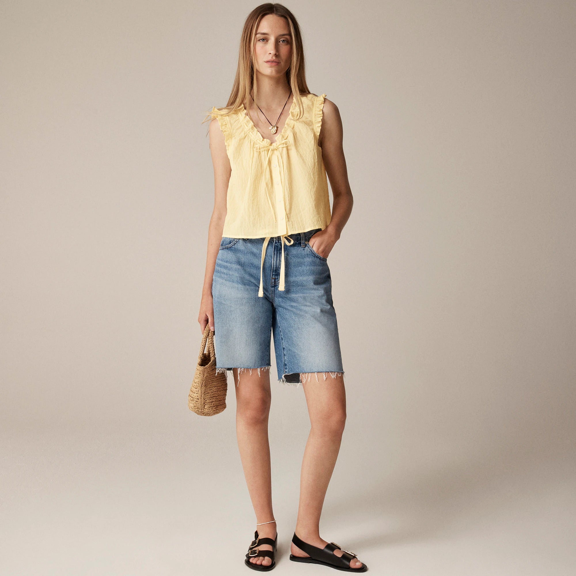 Ruffle-trim button-up top