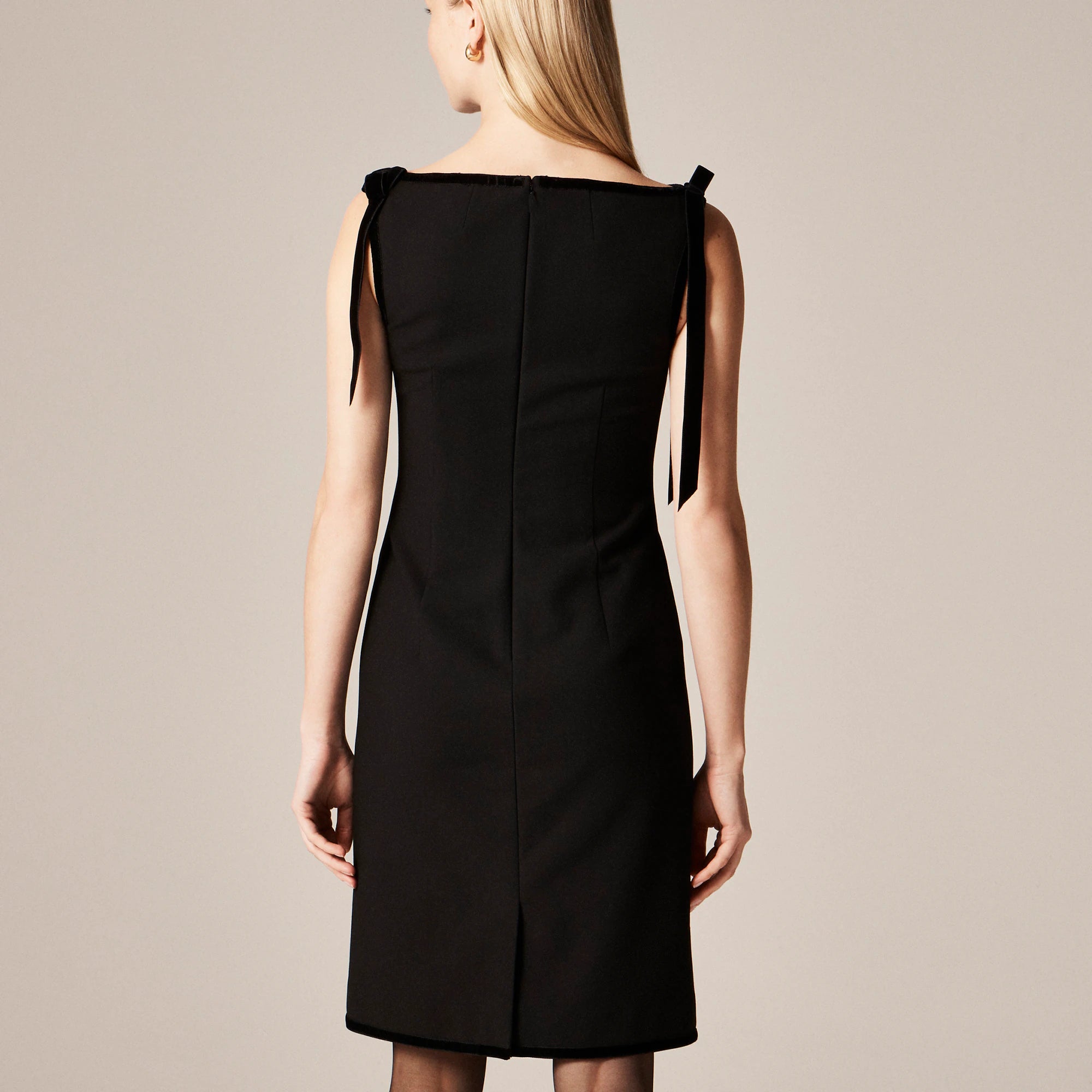 Your dream LBD for the holiday season. This sleeveless sheath dress comes with a refined bateau neckline and clean lines that skim the body for an ultra-flattering fit. Thoughtful details include velvet trim and bow accents at the shoulders, plus a back slit for easy movement. It's crafted from our famous four-season stretch (a super-comfy fabric that never loses its shape), so it's perfect for all the dressed-up events on your schedule.