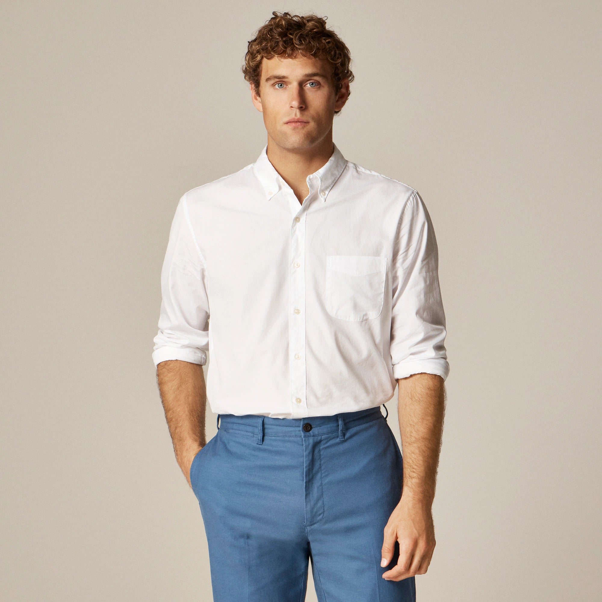 Re-introducing the pinnacle of shirt engineering. We've revamped the super-versatile Secret Wash shirt with premium 100 percent cotton 100s two-ply yarns, plus an improved fit. "100s" refers to a finer yarn size, and "two-ply" means two yarns are twisted together to make a single thread. The result is smoother, stronger fabric. We also use our (proprietary) multistep wash process to achieve a soft, broken-in feel from day one. It's effortlessly casual right out of the dryer and easily polished with a quick iron. Long story short: The customer favorite since 2005 is now better than ever. By buying cotton products from J.Crew, you're supporting our investment in Better Cotton's mission to help cotton communities survive and thrive while protecting and restoring the environment. This product is sourced through a system of mass balance and therefore may not contain Better Cotton.