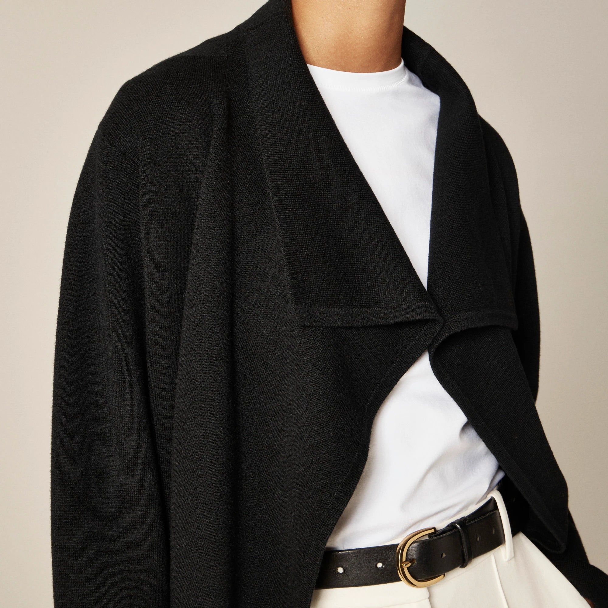 Our new favorite multitasking layer. This versatile style comes with a midlength cut that falls just below the knee, heritage-inspired patch pockets and an open, cascading front with the perfect amount of drape. Plus, it's crafted from a cozy knit fabric that we can guarantee you'll want to wrap yourself up in.