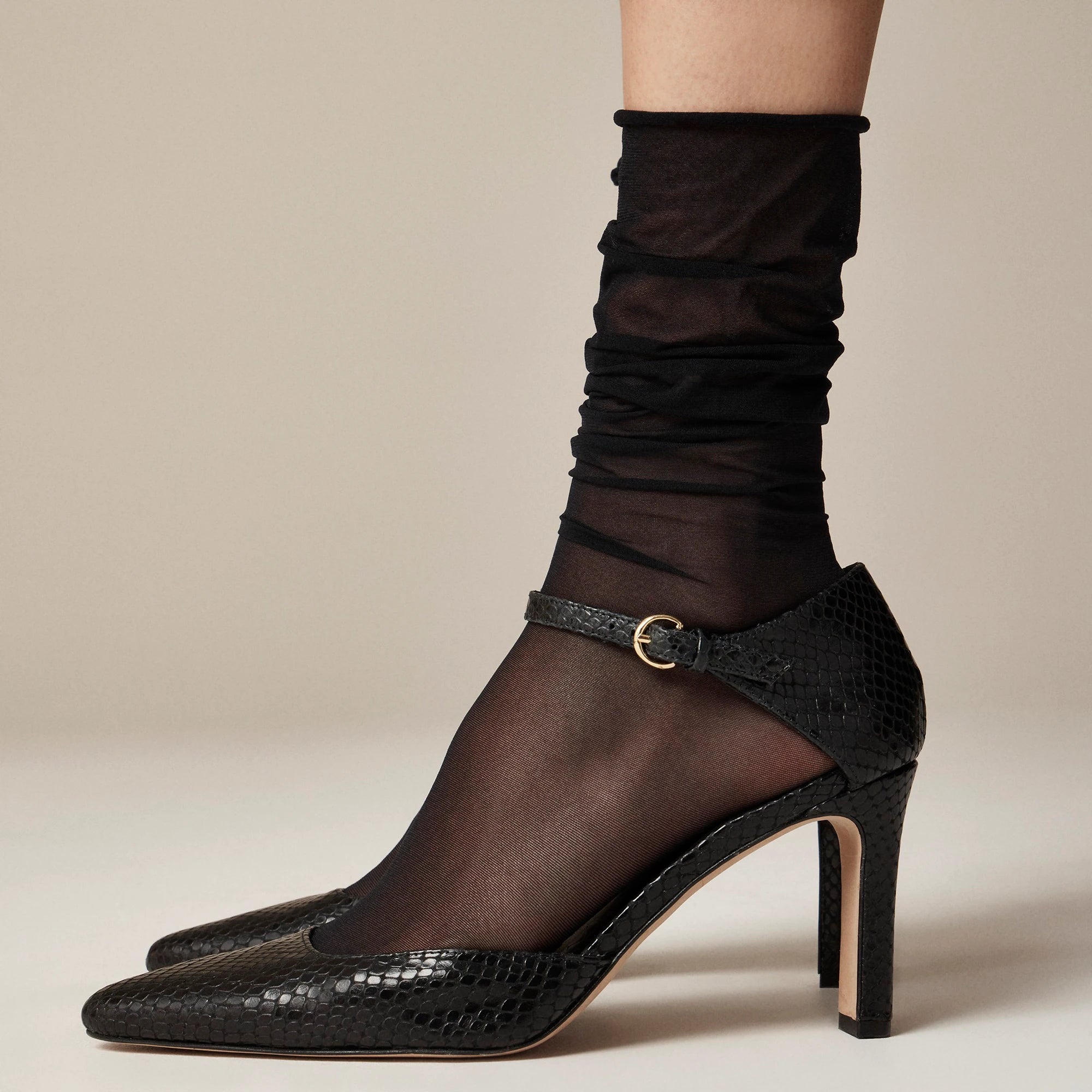 An everyday essential. . .We love these sheer trouser socks with heeled sandals and flat loafers alike. Plus, the rolled cuff creates an effortlessly slouchy look that's extra-stylish.